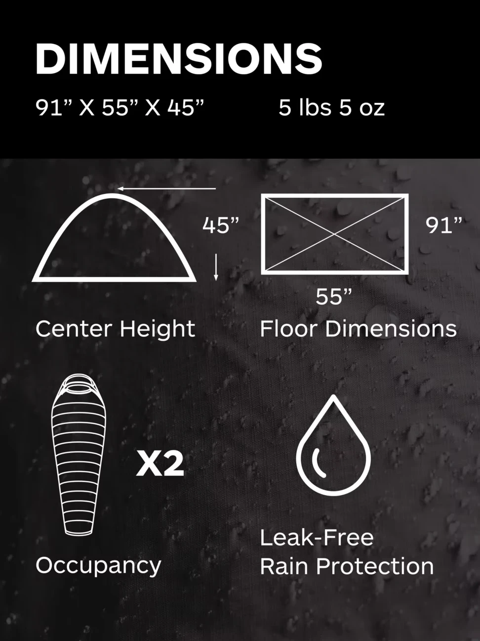 - Seam-taped, full-coverage fly for rain protection