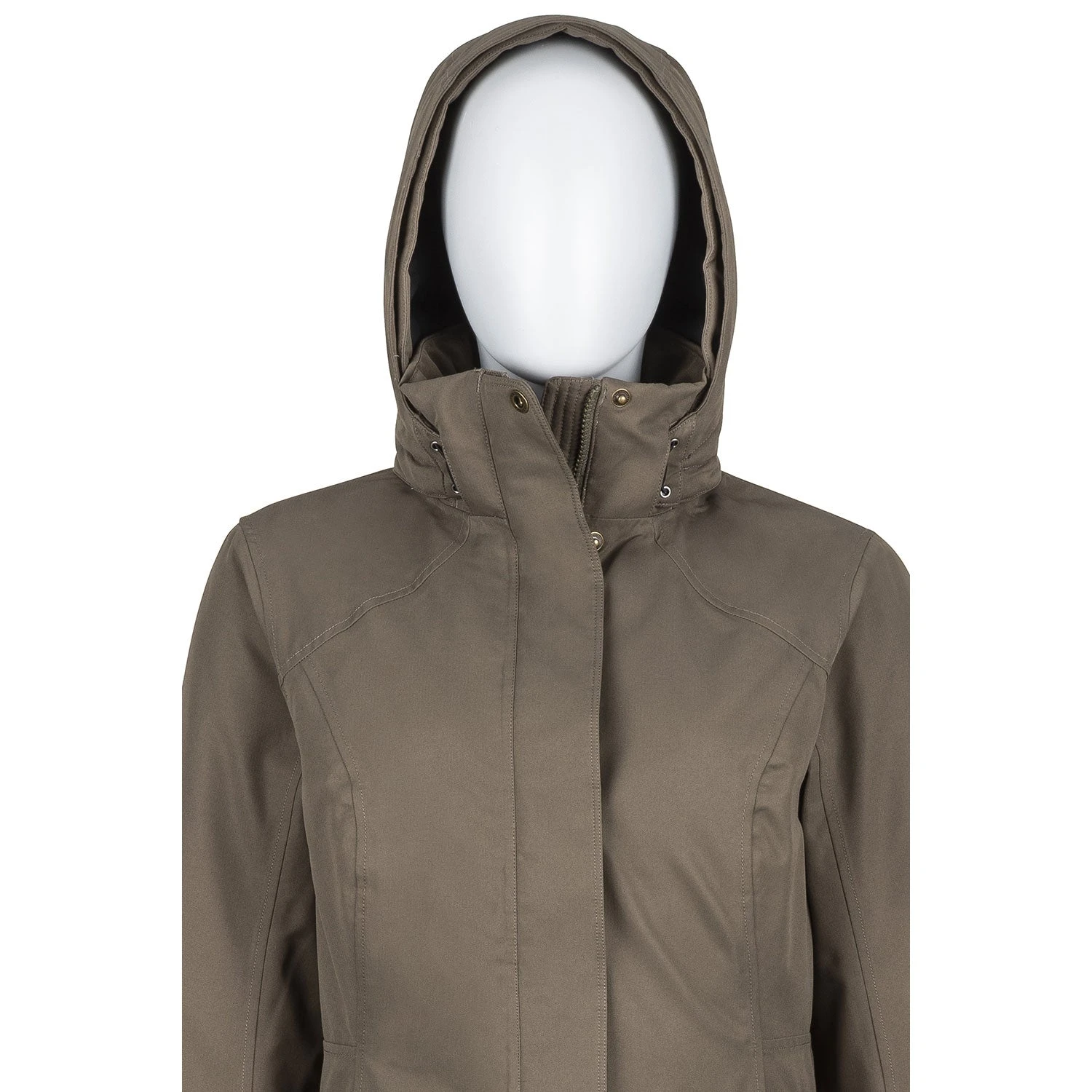 |-|La distinction, les lignes chics urbaines et les nombreux détails camouflent la réelle prouesse technique de Chelsea, le manteau pour femmes résistant à l’eau et isolé. Taillé expressément pour les femmes, ce manteau pleine longueur commence avec la MemBrain® de Marmot, est rempli de duvet d’oie avec facteur de gonflement de 700 et arbore un capuchon détachable garni d’une collerette de fourrure amovible ainsi que de poches chauffe-mains à glissière.