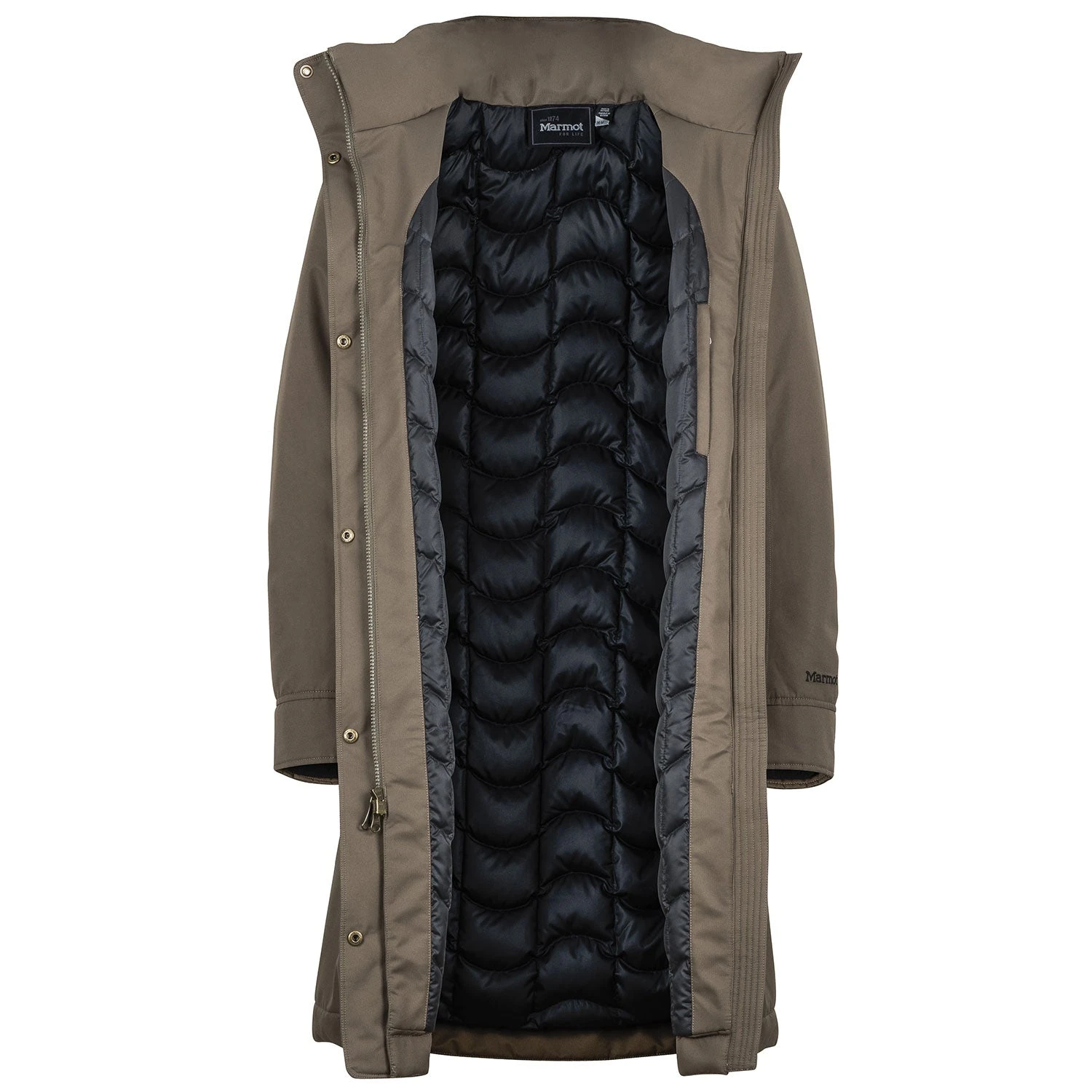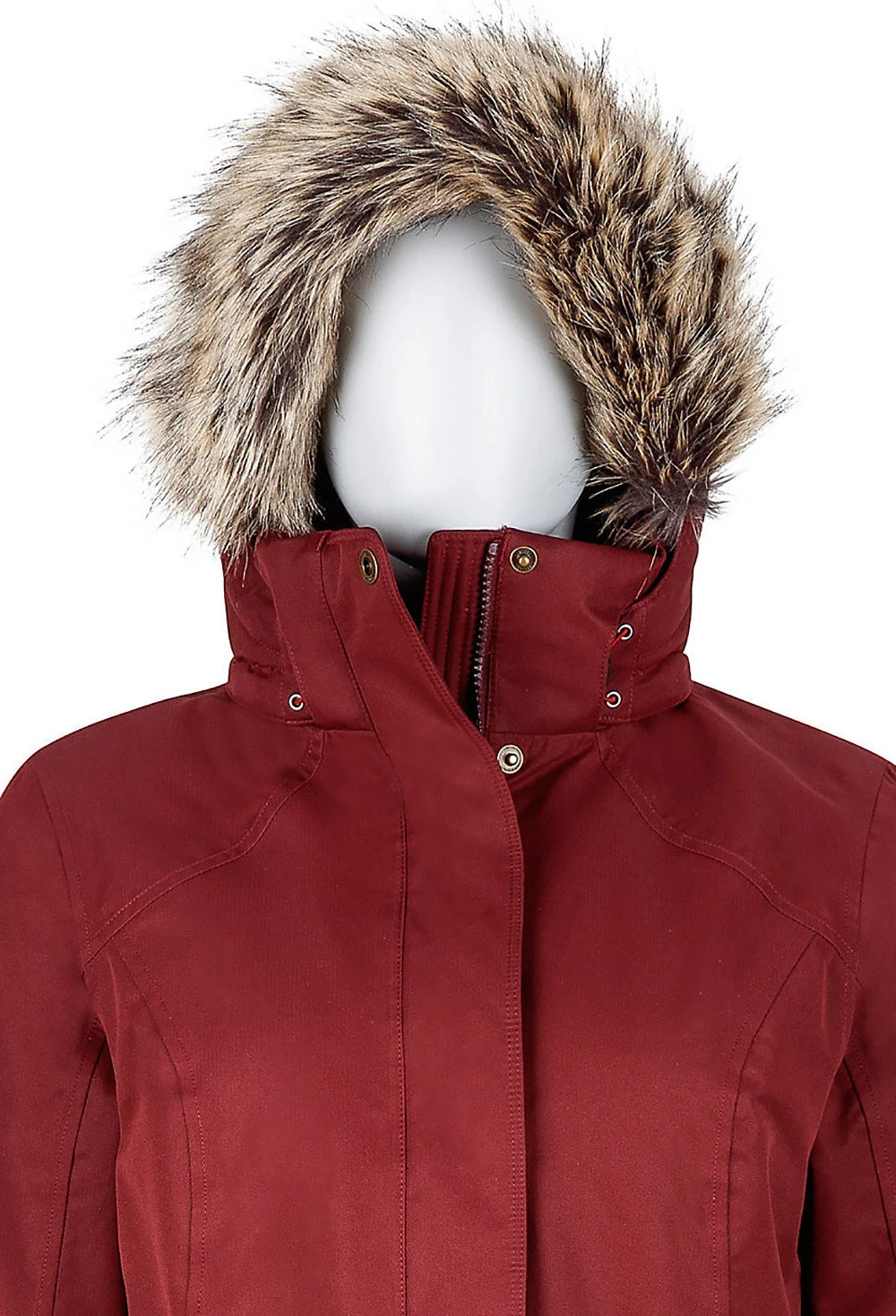 Distinct, urban-chic lines and minute details camouflage the serious technical prowess of the waterproof, insulated Women’s Chelsea Coat. Sized specifically for women, this full-length coat starts with Marmot MemBrain®, is stuffed with 700-fill-power goose down, and features a zip-off hood with a removable fur ruff plus zippered handwarmer pockets.