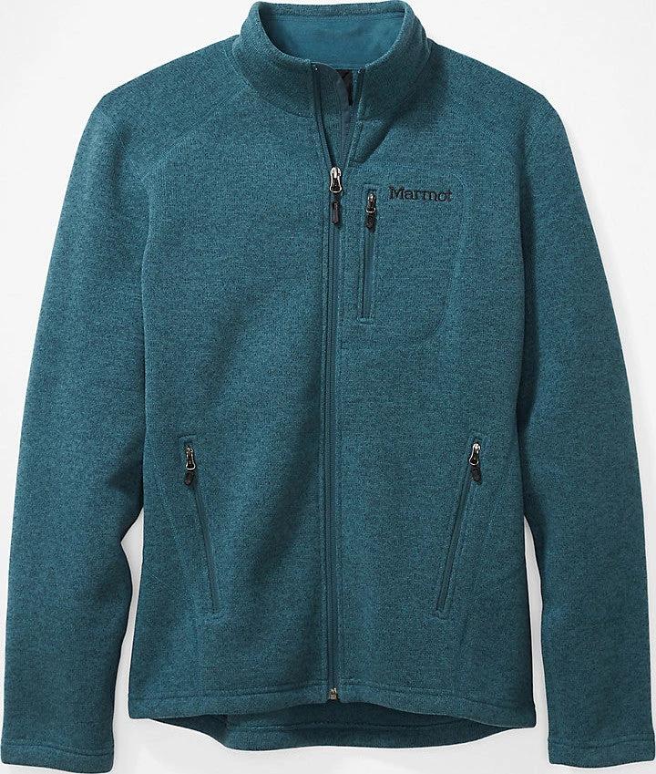 The Marmot Drop Line Jacket’s sweater fleece is a warm, cozy companion for hunkering down on the long haul or brisk walks around town. It’s made from 100% polyester sweater knit in a warm yet breathable 100-weight weave. Durable flat-locked seams and a moisture-wicking DriClime collar maintain comfort. The zippered chest pocket has a media port, allowing you quick and easy access to your headphones. This adventure-ready fleece is also perfect for travel—so order an extra shot of espresso for the red-eye flight and get comfortable for the constant stop and go