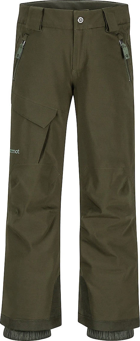 Whether he’s dreaming of the double-black diamonds or you’re taking him down the bunny slopes, the Boys’ Vertical Pant is ideal for the dedicated, powder-seeking student. Breathable, waterproof Marmot MemBrain® fabric forms a watertight shield, while the lightweight Thermal R insulation ensures he stays warm. Removable suspenders and adjustable waist with snap closure and zip fly means he’ll stay comfortable even while taking breaks between runs. He’ll be able to wear these pants for more than one season too, thanks to the Kids -Grow-An-Inch cuffs.