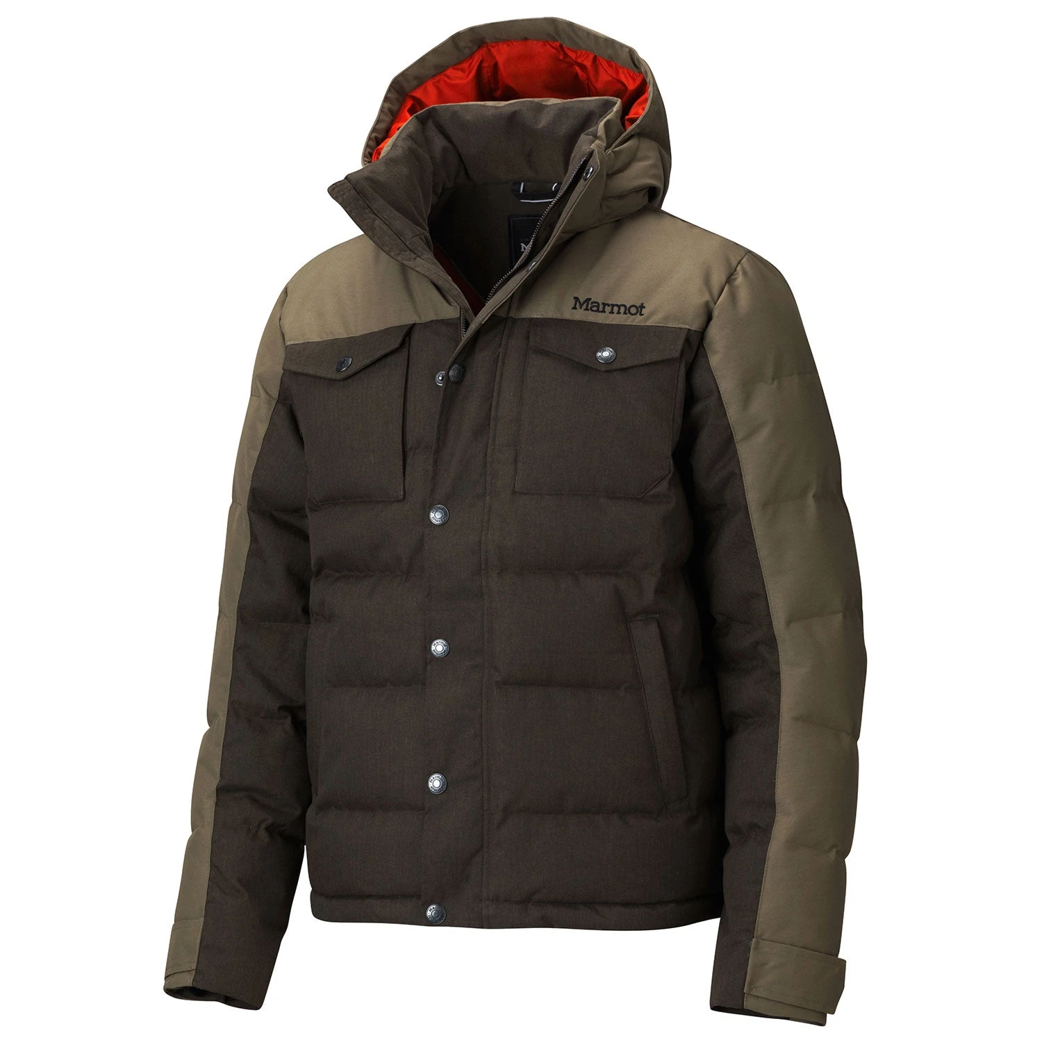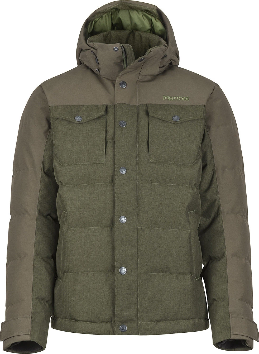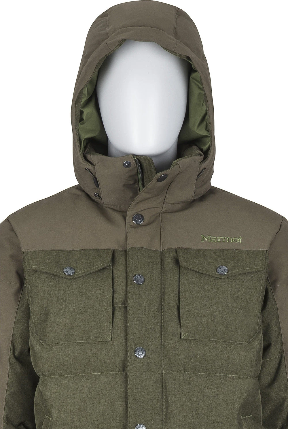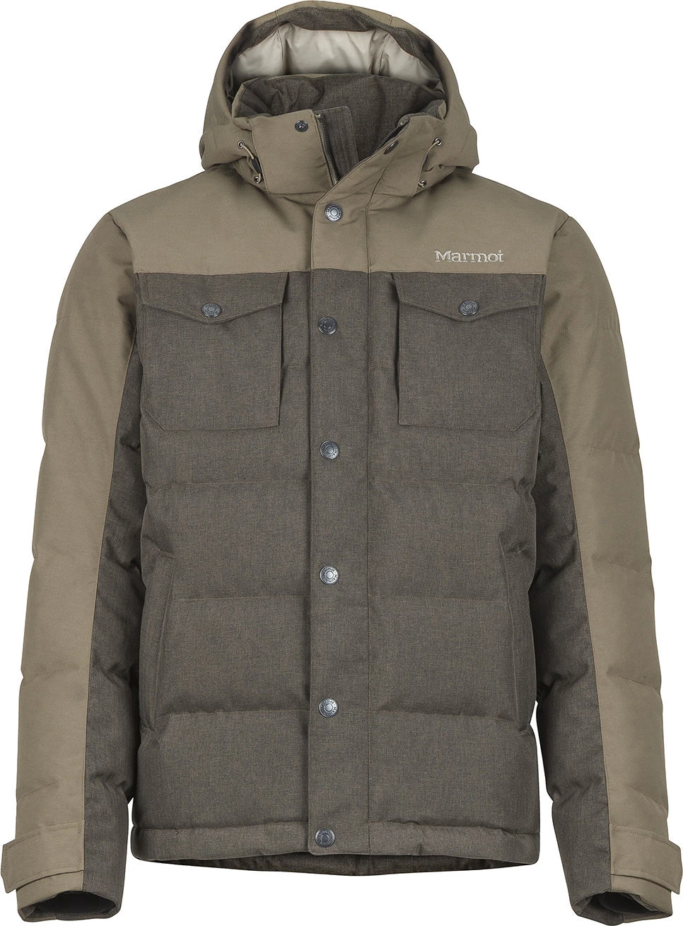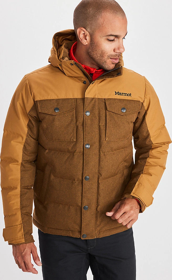 The men’s FORDHAM jacket by Marmot has the durability to match its rugged, outdoorsman looks. 700 fill power down lines this jacket, delivering tremendous thermal capacity and warmth. Its shoulders and arms are finished with a long-lasting 2L Herringbone Twill, while sturdy 2-layer Plain Weave with a waterproof MemBrain guards the jacket body. These protective weather-shielding weaves shed light rain and snow, making this jacket perfect for cold urban outings. The insulated hood zips off, allowing for a different wearing style. Along with the button-flap chest pockets, the Fordham jacket features zip hand pockets and a zippered internal media pocket.
