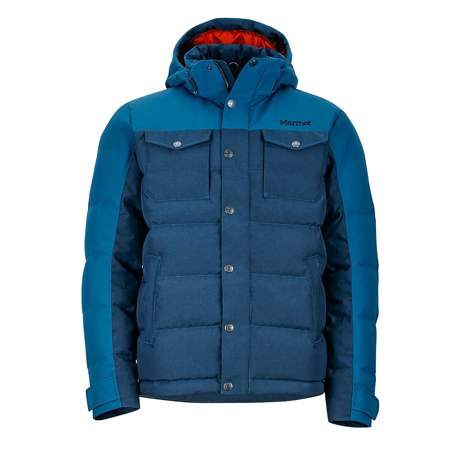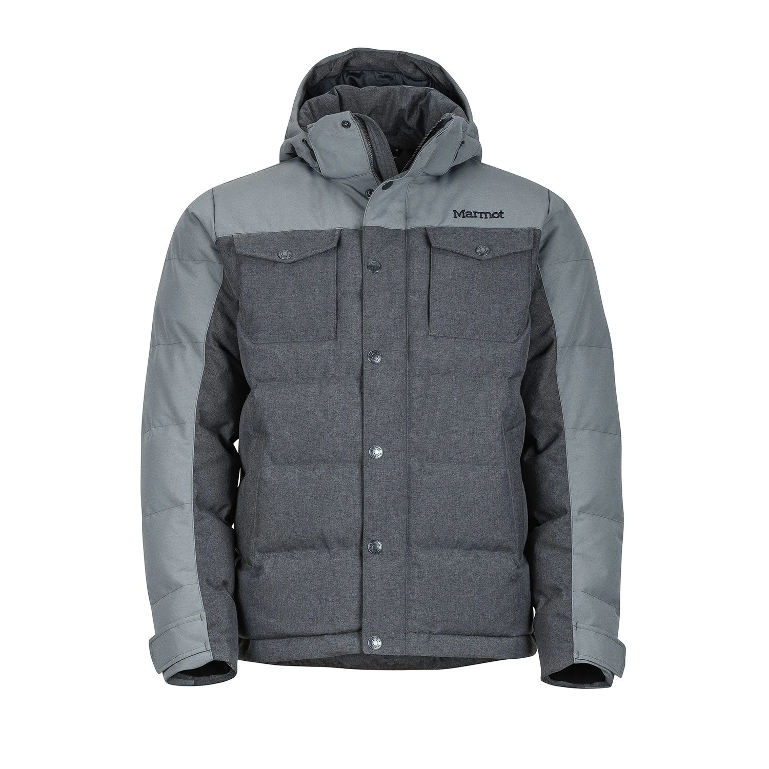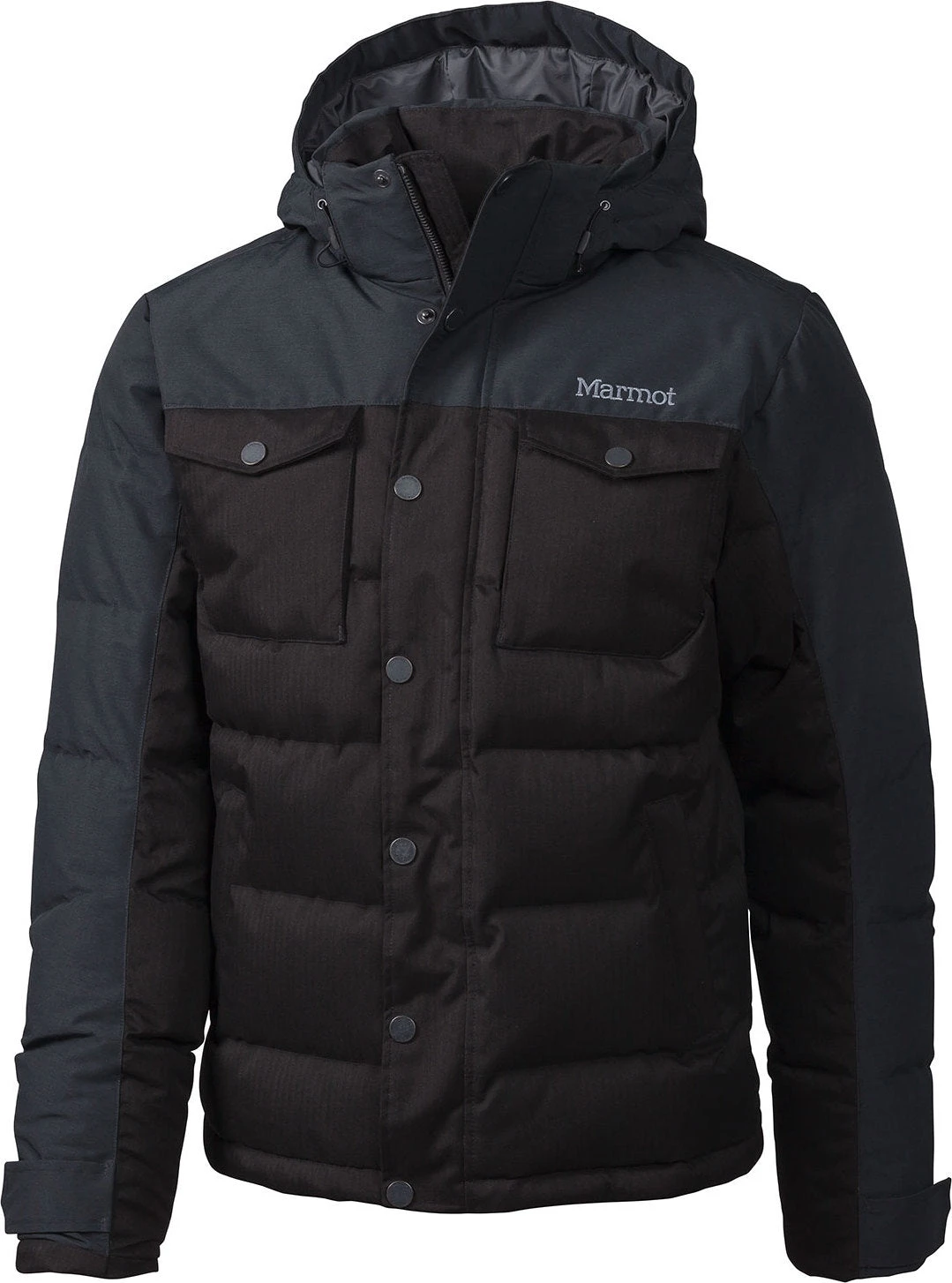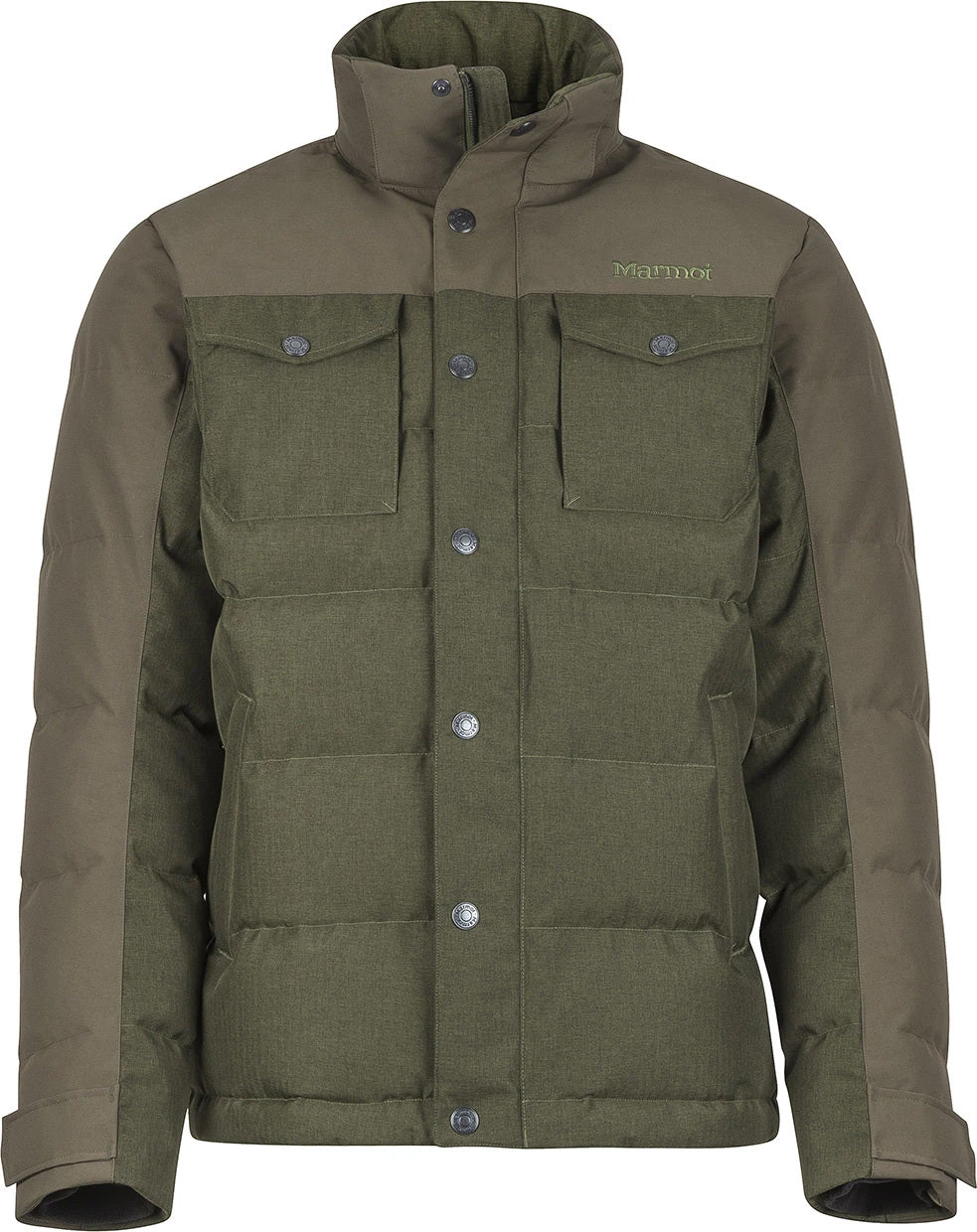The men’s FORDHAM jacket by Marmot has the durability to match its rugged, outdoorsman looks. 700 fill power down lines this jacket, delivering tremendous thermal capacity and warmth. Its shoulders and arms are finished with a long-lasting 2L Herringbone Twill, while sturdy 2-layer Plain Weave with a waterproof MemBrain guards the jacket body. These protective weather-shielding weaves shed light rain and snow, making this jacket perfect for cold urban outings. The insulated hood zips off, allowing for a different wearing style. Along with the button-flap chest pockets, the Fordham jacket features zip hand pockets and a zippered internal media pocket.