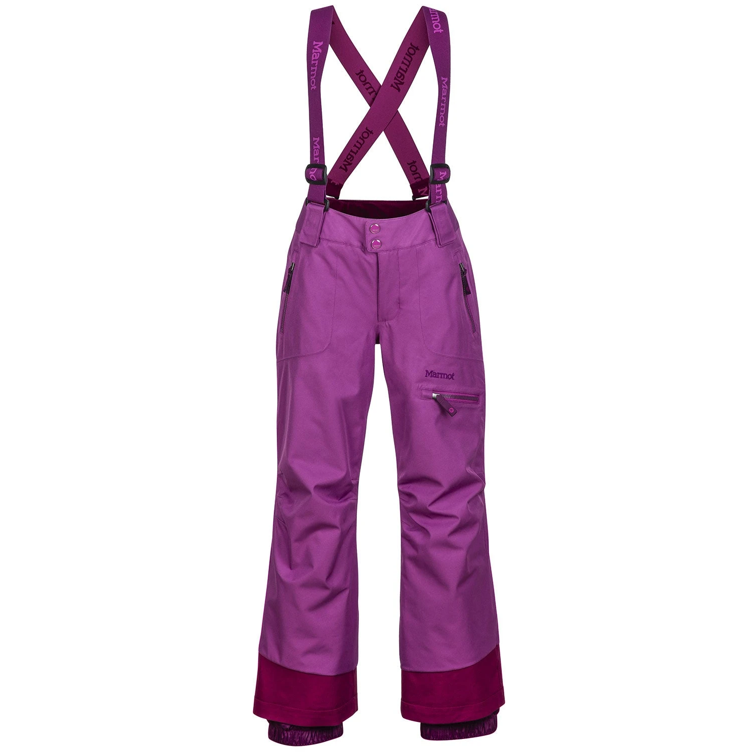 A hard-working pant, the Girl’s Starstruck Pant takes to the snow with confident style. ?Made with a two-layer waterproof/breathable MemBrain® fabric that’s seam taped, this pant’s unique adjustable length cuff allows her to grow into the pant. Reverse brushed tricot seat and thighs for added comfort; adjustable, colorful suspenders customize the fit. Mountain-savvy features include articulated knees, leg vents with water-resistant zippers and internal gripper elastic gaiters.