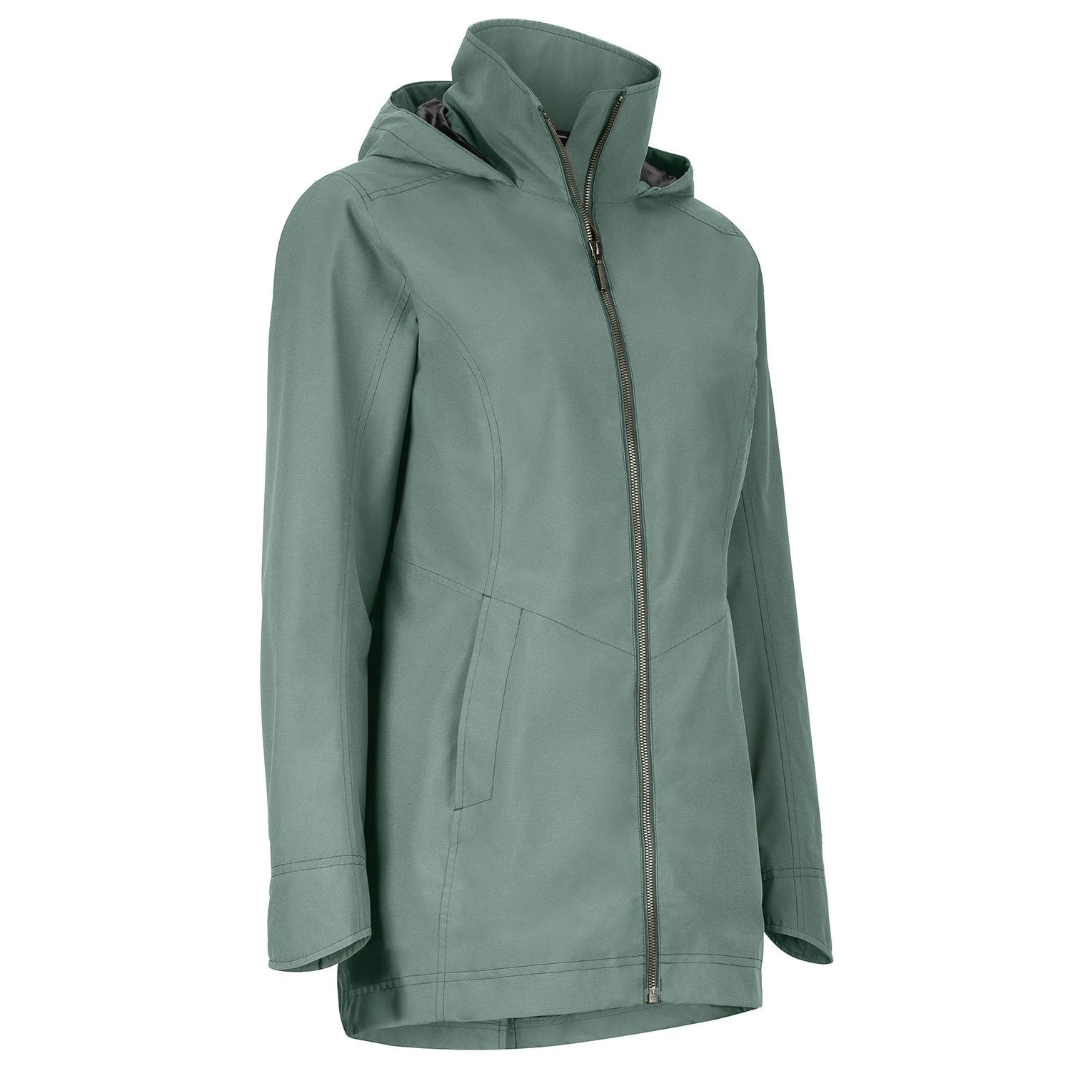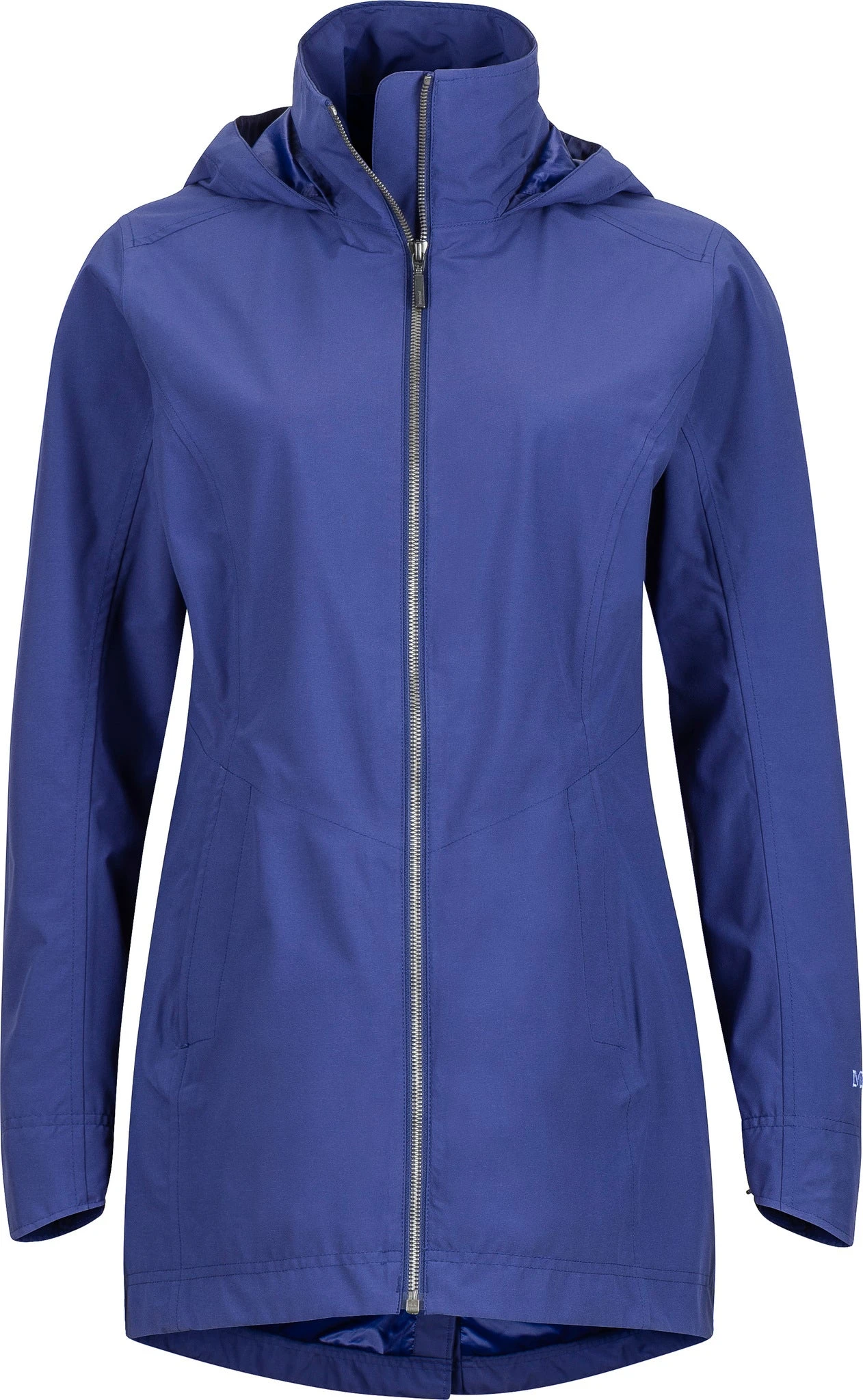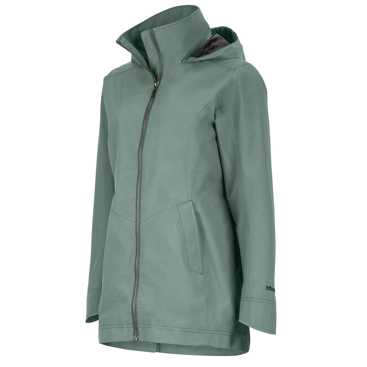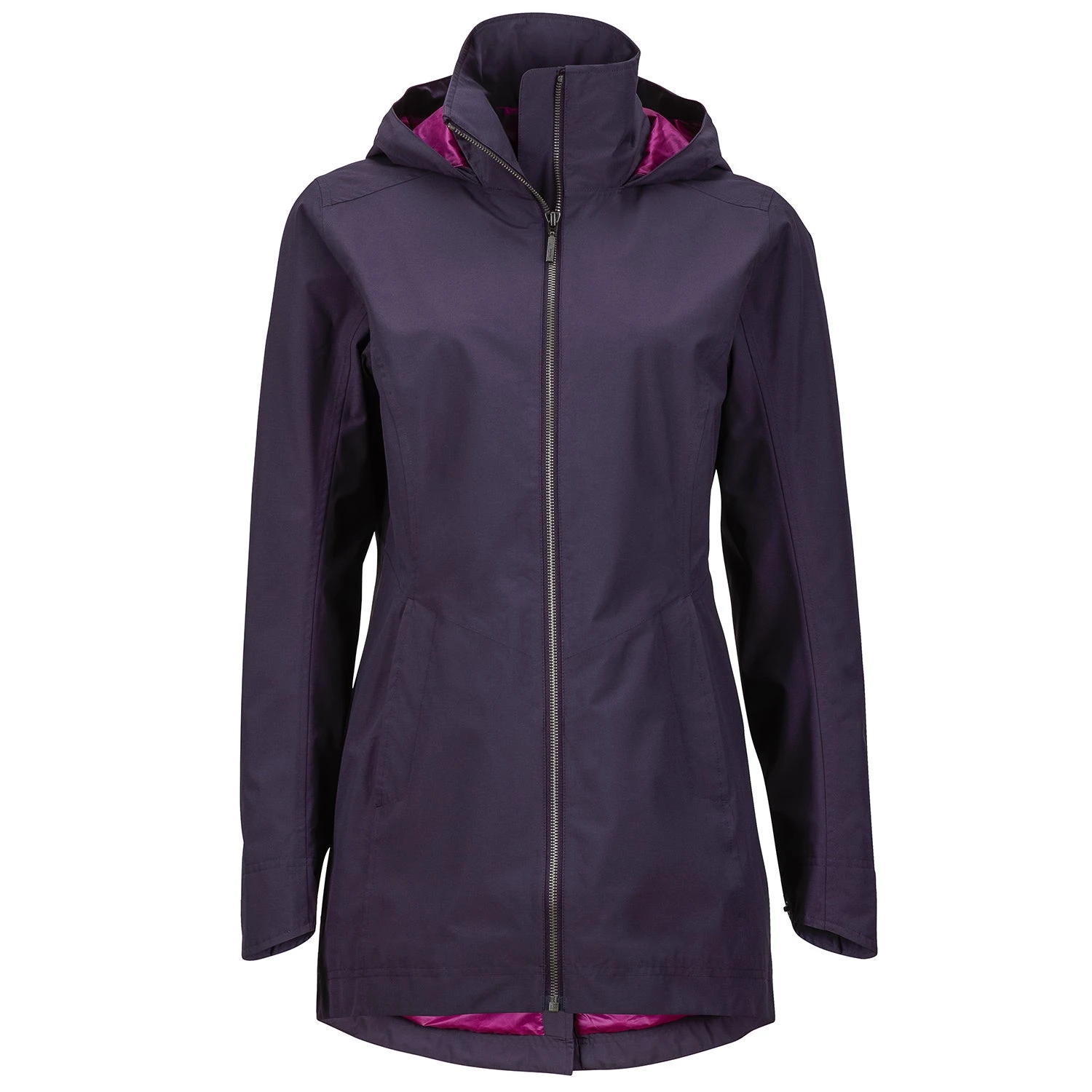 The women’s LEA Jacket by Marmot is a completely waterproof city slicker with a stylish cut and practical protection. The breathable membrane is waterproof and has taped seams to seal out moisture. tuck the attached hood away when you don’t need it. Two zip hand pockets secure essentials. Tighten up the snap cuffs when the wind blows the rain all around.Â
