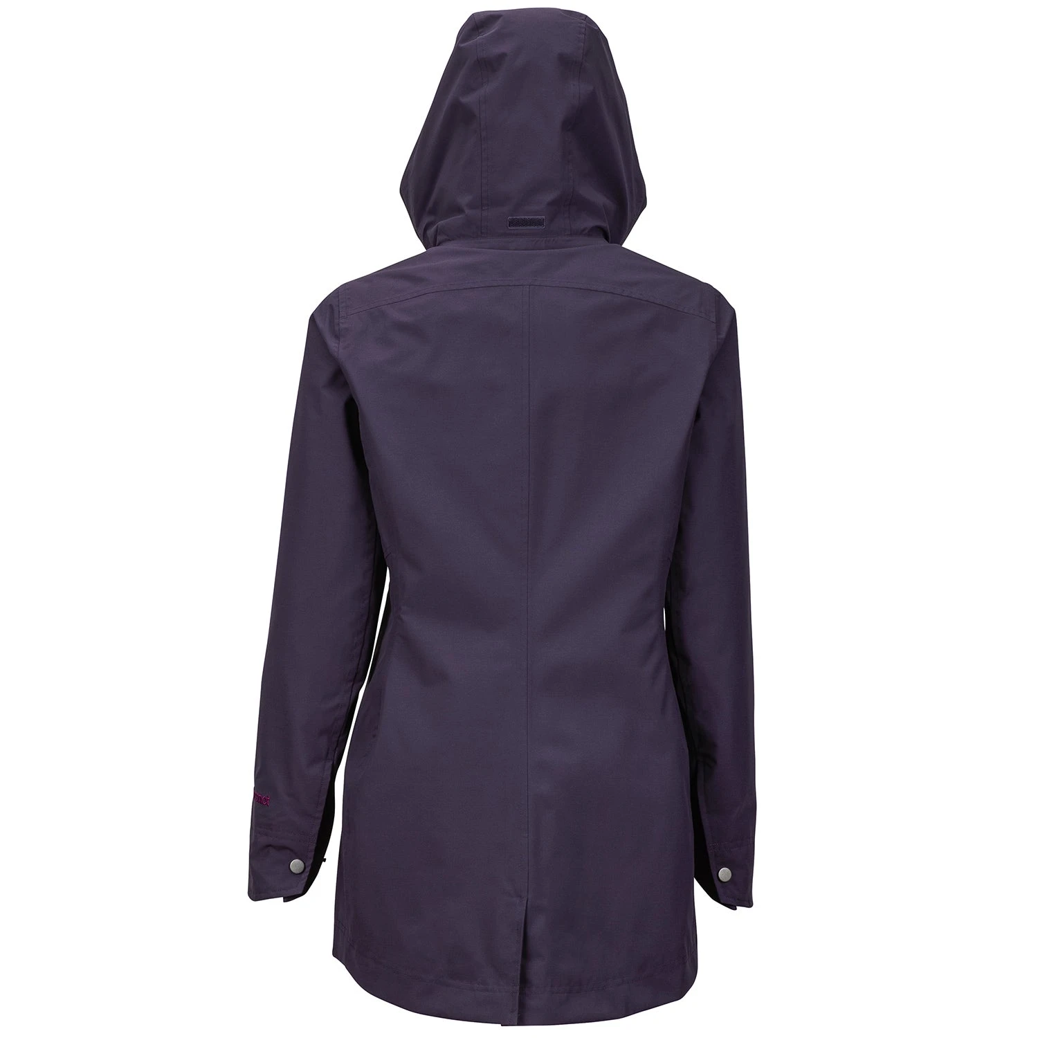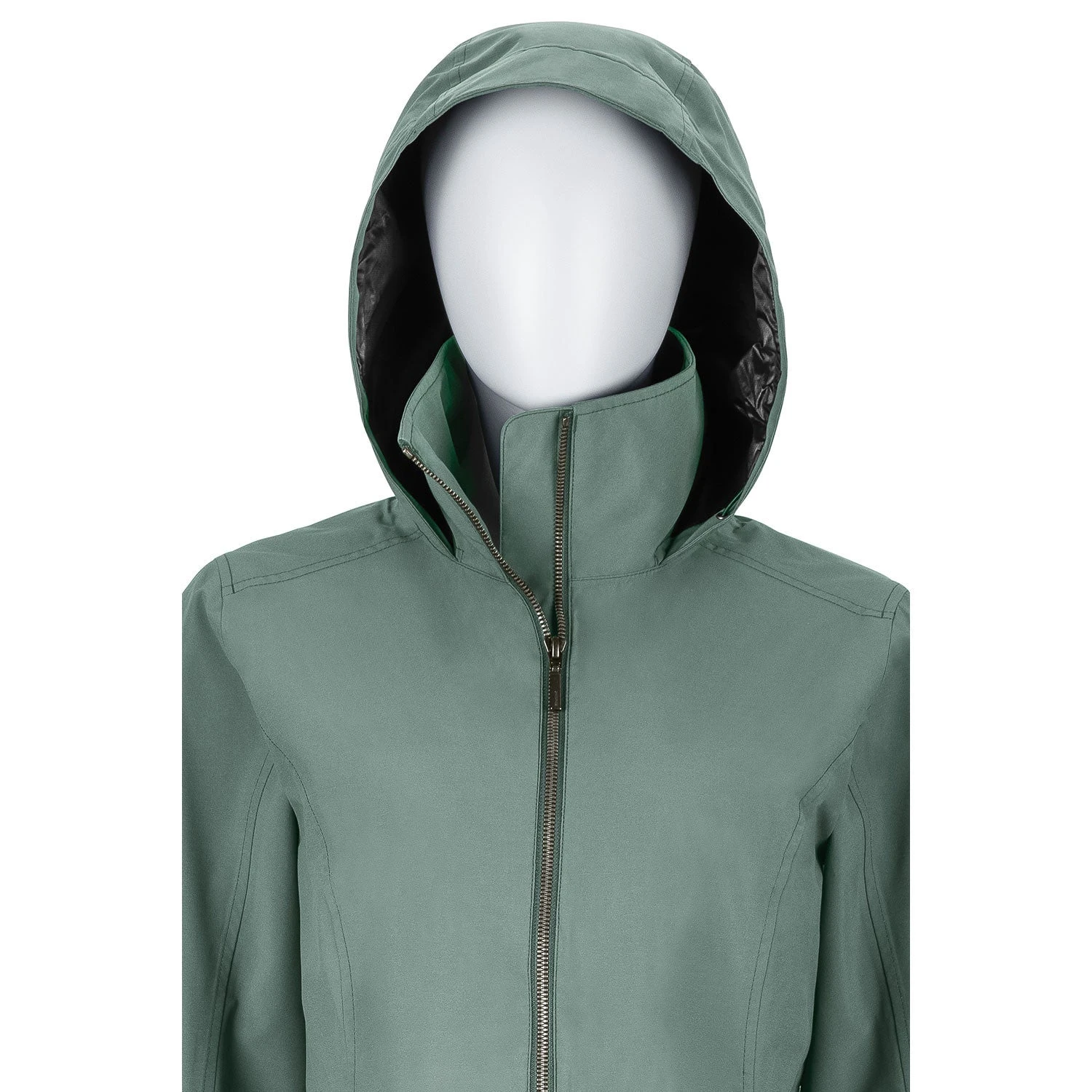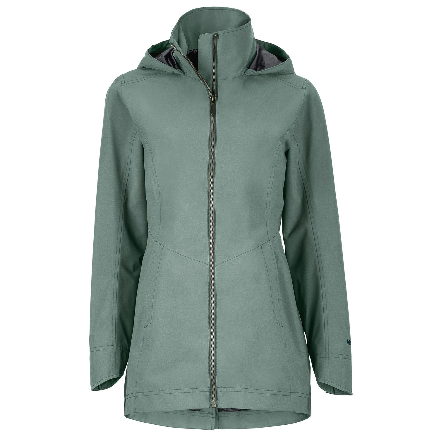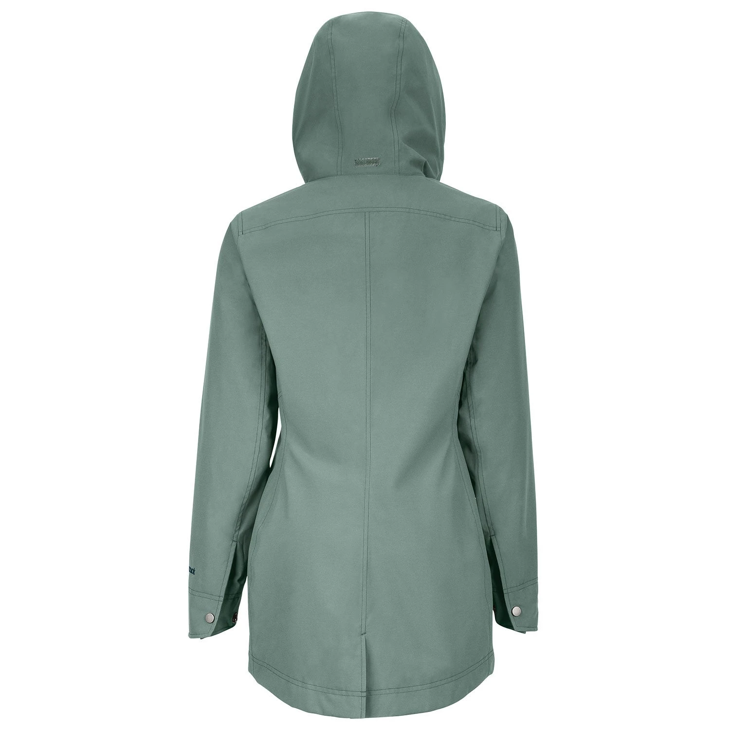 The women’s LEA Jacket by Marmot is a completely waterproof city slicker with a stylish cut and practical protection. The breathable membrane is waterproof and has taped seams to seal out moisture. tuck the attached hood away when you don’t need it. Two zip hand pockets secure essentials. Tighten up the snap cuffs when the wind blows the rain all around.Â