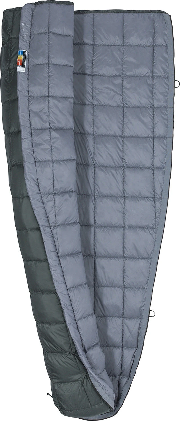 Often on summer hikes or bike tours, space and weight are at a premium. Save on both with the Micro 50, a light, easy-to-pack 650-fill-power goose down bag. This durable and lightweight bag is filled with water-resistant insulation and has full-length wrap-around zippers that provide great ventilation. Constructed with a shape that allows this bag to convert to a flat blanket, the Micron has an internal stash pocket, and two hang loops.
