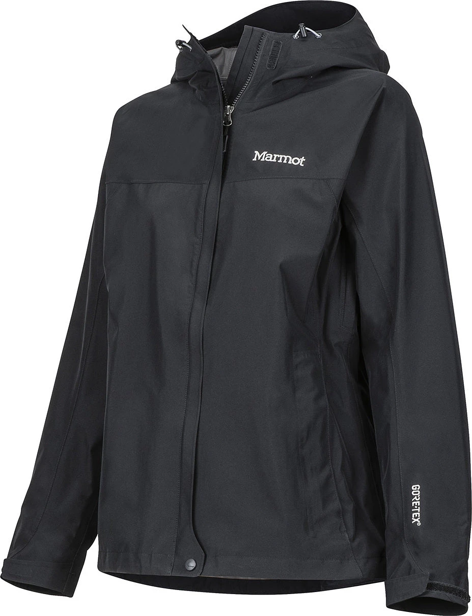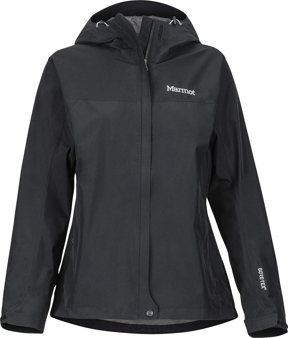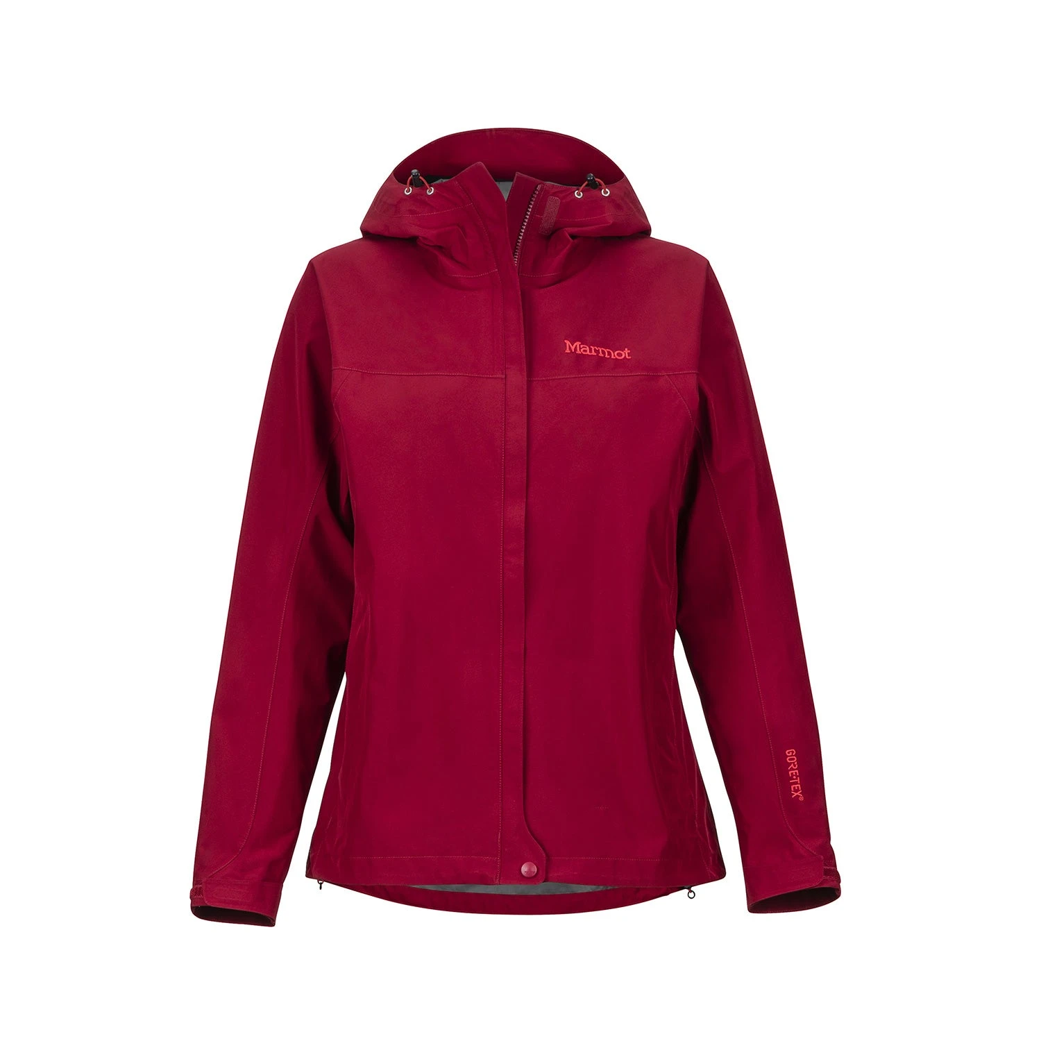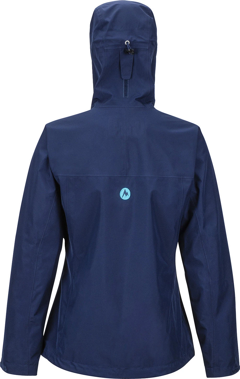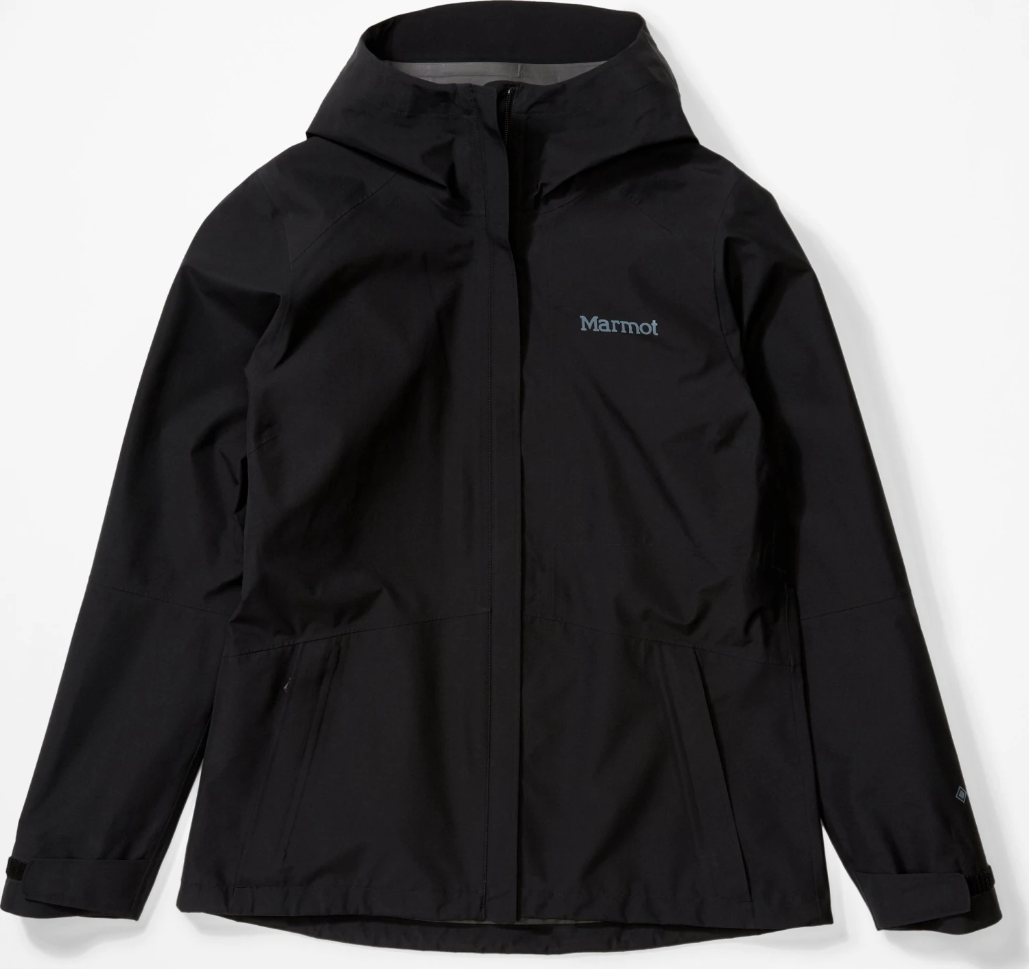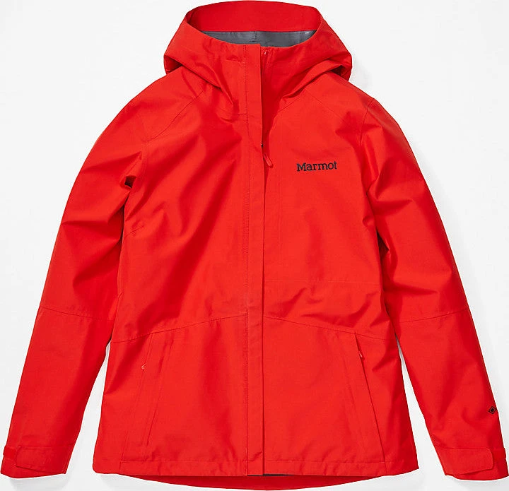 The women’s MINIMALIST WATERPROOF JACKET by Marmot is a lightweight storm shell built for seasonal outdoors adventures. It’s made from GORE-TEX with Paclite Technology. This hydrophobic wind-blocking membrane is lightweight, breathable, and sheds light precipitation. The fabric is 100% recycled and features a PFC-free, water-repellent finish. The jacket’s hood is fixed and adjustable. A Velcro stormflap covers the front zipper, and a DriClime lined chin guard protects the face.