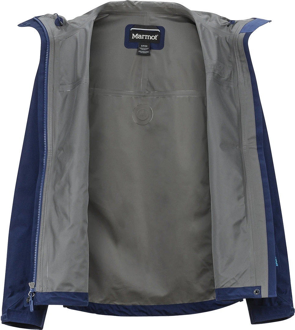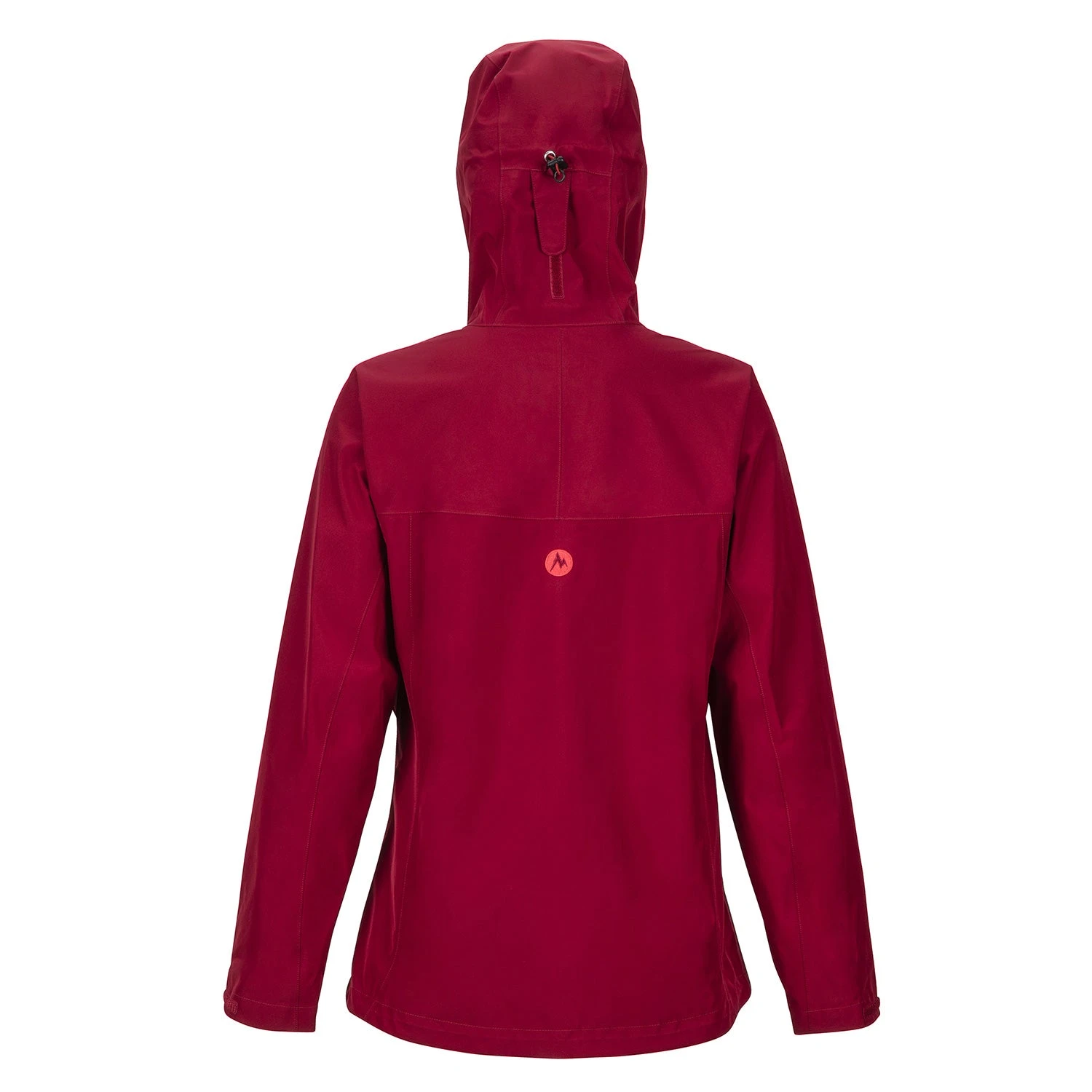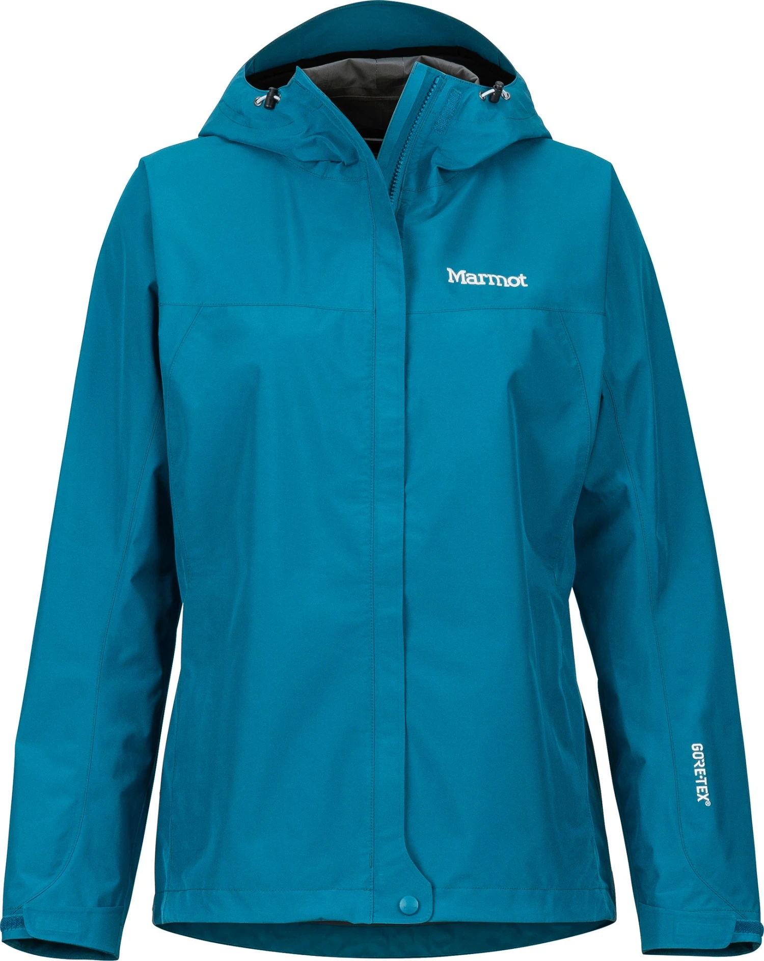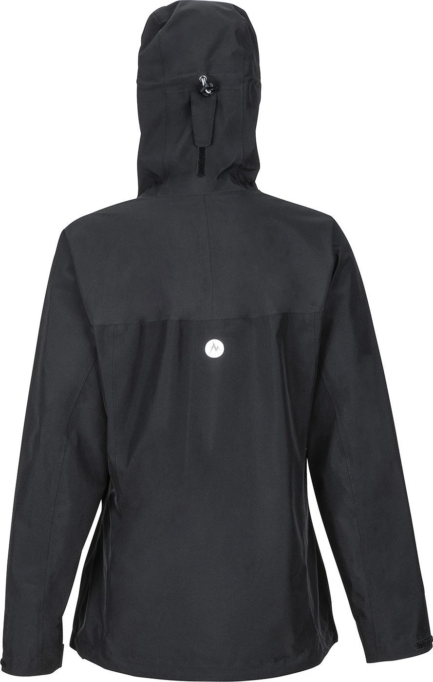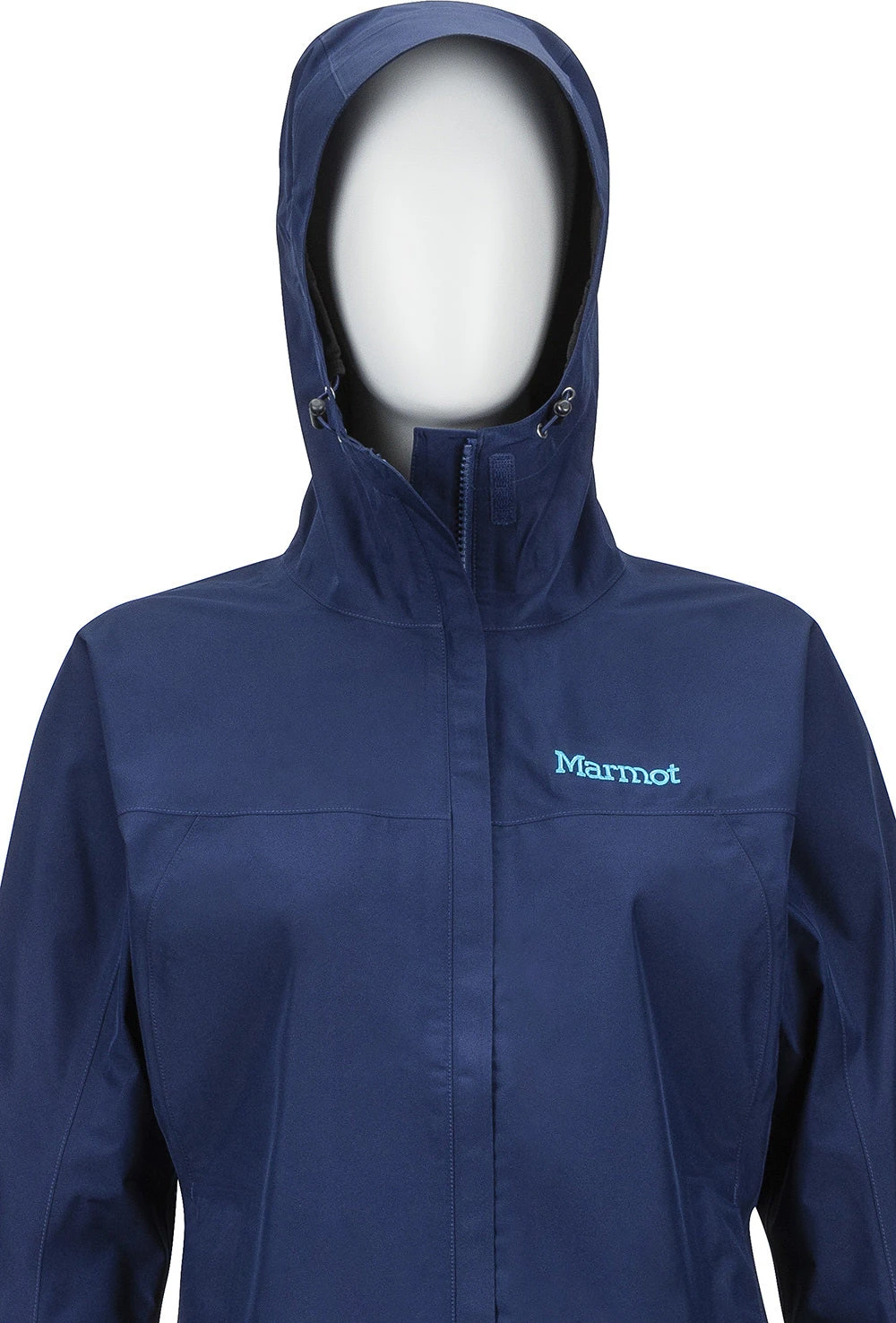 The women’s MINIMALIST WATERPROOF JACKET by Marmot is a lightweight storm shell built for seasonal outdoors adventures. It’s made from GORE-TEX with Paclite Technology. This hydrophobic wind-blocking membrane is lightweight, breathable, and sheds light precipitation. The fabric is 100% recycled and features a PFC-free, water-repellent finish. The jacket’s hood is fixed and adjustable. A Velcro stormflap covers the front zipper, and a DriClime lined chin guard protects the face.