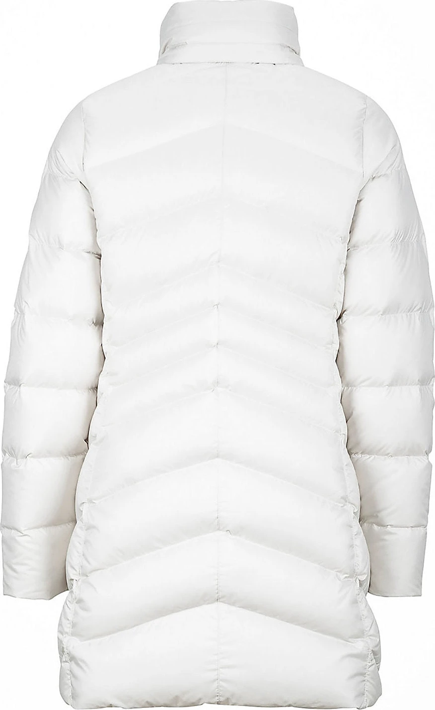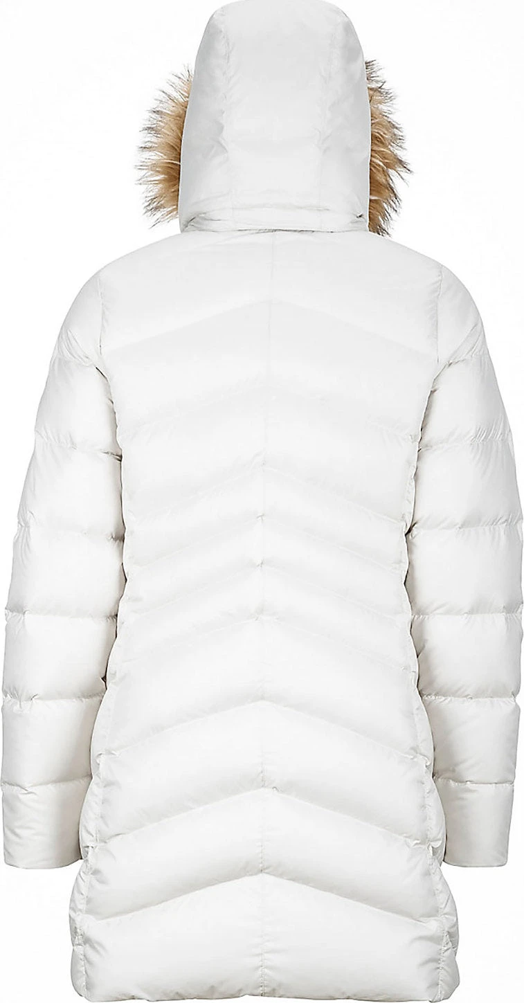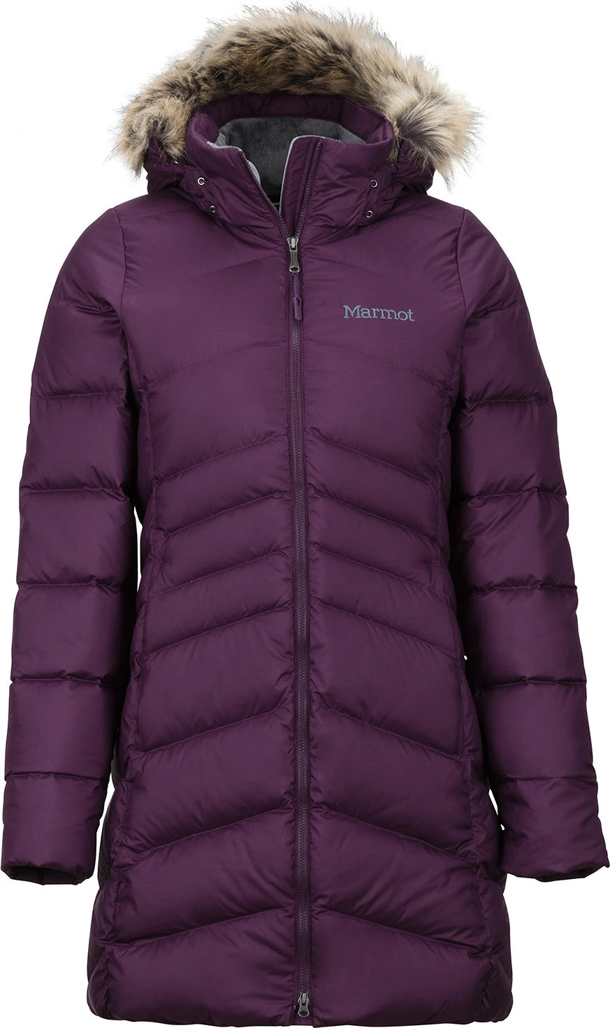 The women’s MONTREAL Coat by Marmot keeps you warm and dry while outside during urban winters. 700 Fill Power Down with Down Defender keeps it dry and traps heat. The shell fabric is water-resistant and durable. The entire torso is fleece-lined, while the inner cuffs are micro-fleece lined. You’ll love the microfleece-lined handwarmer pockets with zippers—perfect for essentials or cold hands.Â