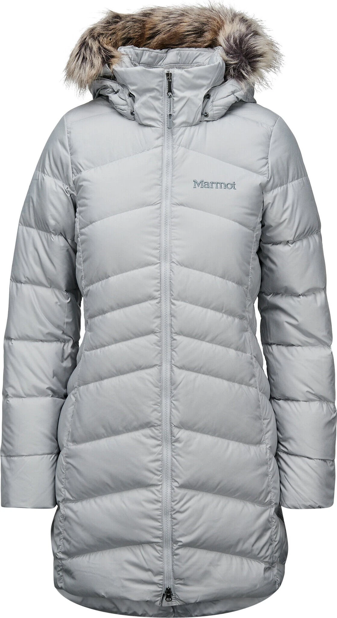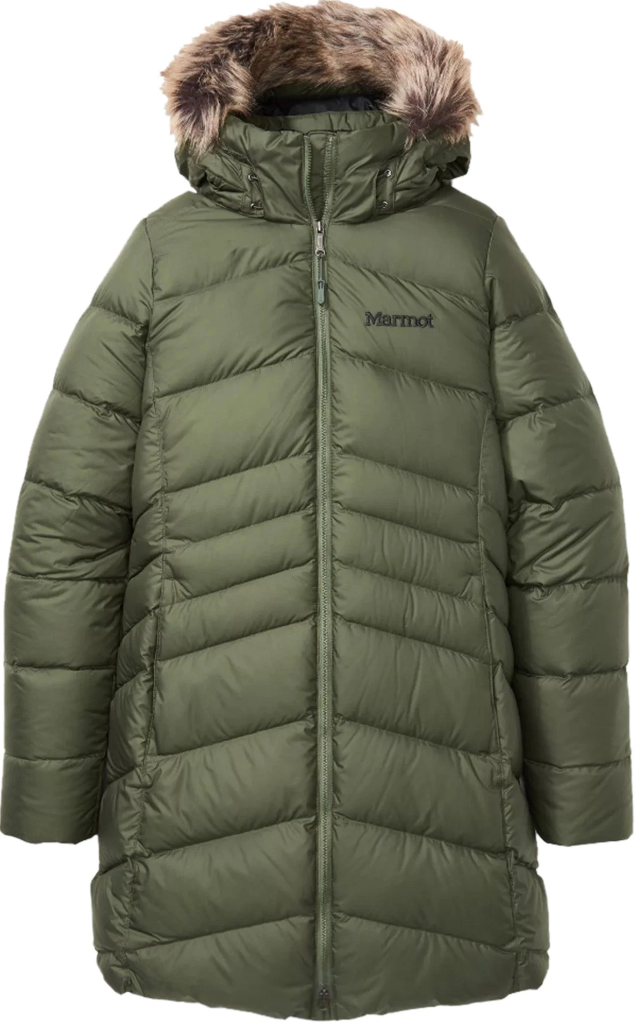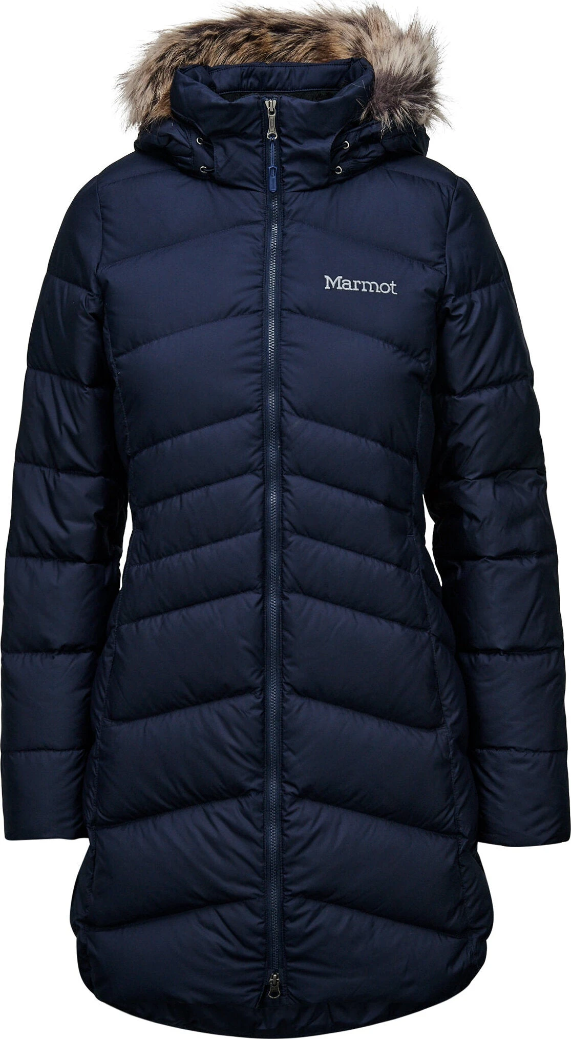 The women’s MONTREAL Coat by Marmot keeps you warm and dry while outside during urban winters. 700 Fill Power Down with Down Defender keeps it dry and traps heat. The shell fabric is water-resistant and durable. The entire torso is fleece-lined, while the inner cuffs are micro-fleece lined. You’ll love the microfleece-lined handwarmer pockets with zippers—perfect for essentials or cold hands.Â