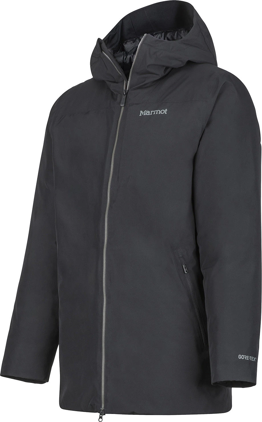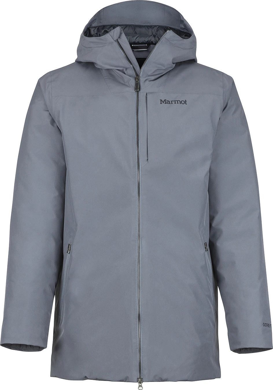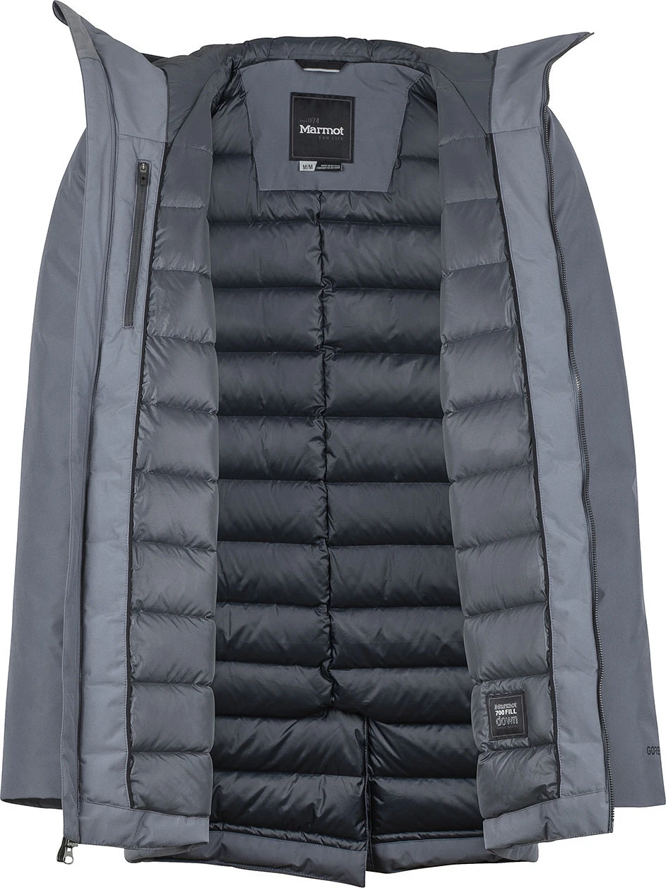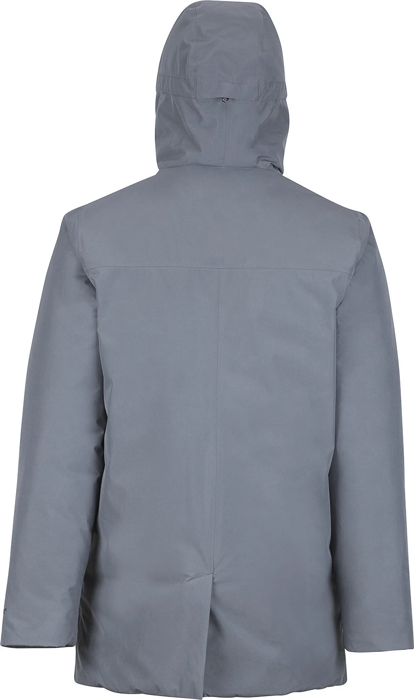 The warm, waterproof, and fully insulated men’s OSLO JACKET by Marmot is designed for life in Nordic winter cities. This stylishly minimalistic coat is padded with premium 700 fill power recycled down for warmth with less of an environmental impact. The waterproof/breathable 2-layer GORE-TEX outer is fully seam-taped, delivering leakproof weather protection in snowstorm conditions. Down Defender technology improves the water resistance of the filling in the event of saturation, improving the lifespan of the jacket. The Oslo has an adjustable hood to provide safeguarding against cold and blustery weather. Articulated elbows and Marmot’s Angel-Wing Movement keep your arms moving freely even when you’re wearing heavy layers underneath.