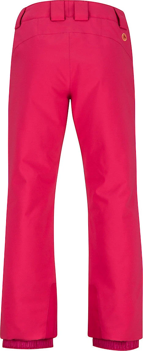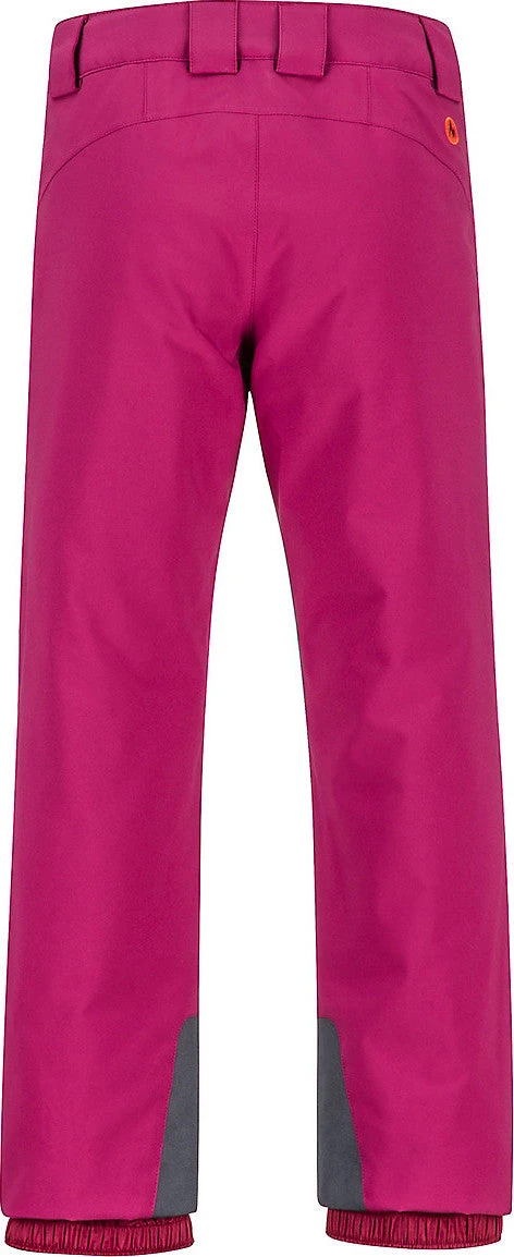 When the weather calls for deep powder on the mountain, give her the gear to carve her own path with the Girls’ Slopestar Snow Pants. Waterproof/breathable Marmot MemBrain® fabric repels heavy rain and snow for hours, while the 100% taped seams also help keep water out. Moisture-wicking and breathable 60 gram Thermal R insulation keeps her warm and dry while still staying compressible. Articulated knees, and Cordura® scuff guards mean a more comfortable trip up and down the mountain. The unique, adjustable-length cuffs grows with her, so she’ll be able to shred in these pants season after season.