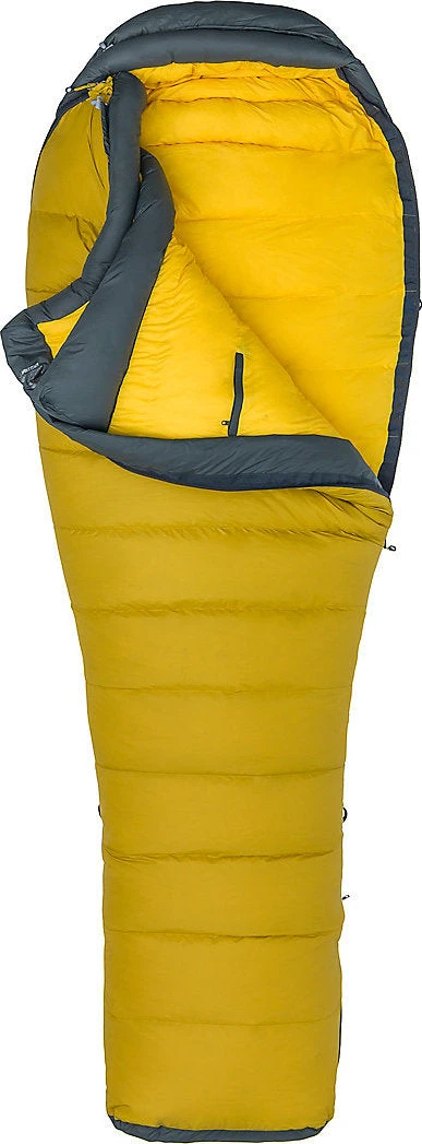 The mummy-style, PFC-free Wind River Sleeping Bag is what you want to have when the temperatures seriously drop on your next overnight camping trip to around -10° F. The 650 fill power down plus ground-level side seams will keep you warm while the water-resistant Down Defender helps keep you dry. The fold-down secondary zipper adds ventilation when you need it while the roomy footbox keeps you comfortable. Includes a stuff and storage sack for an organized trip home.