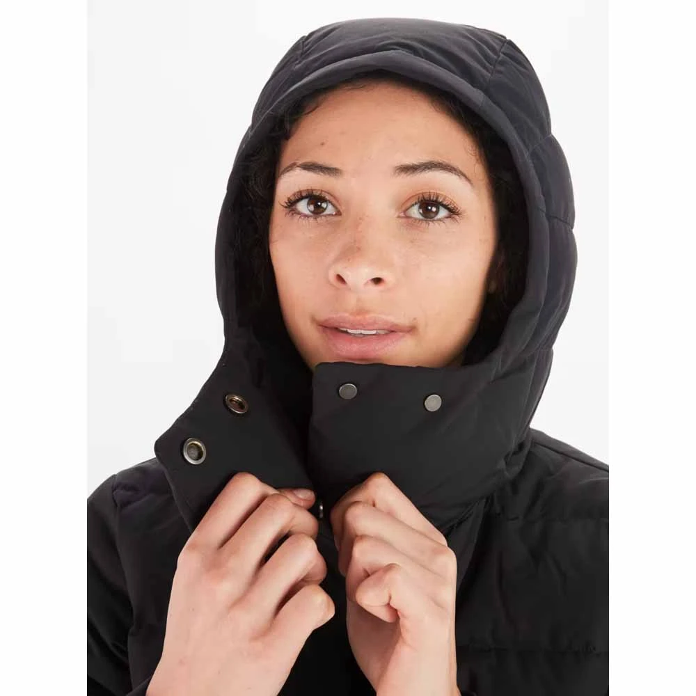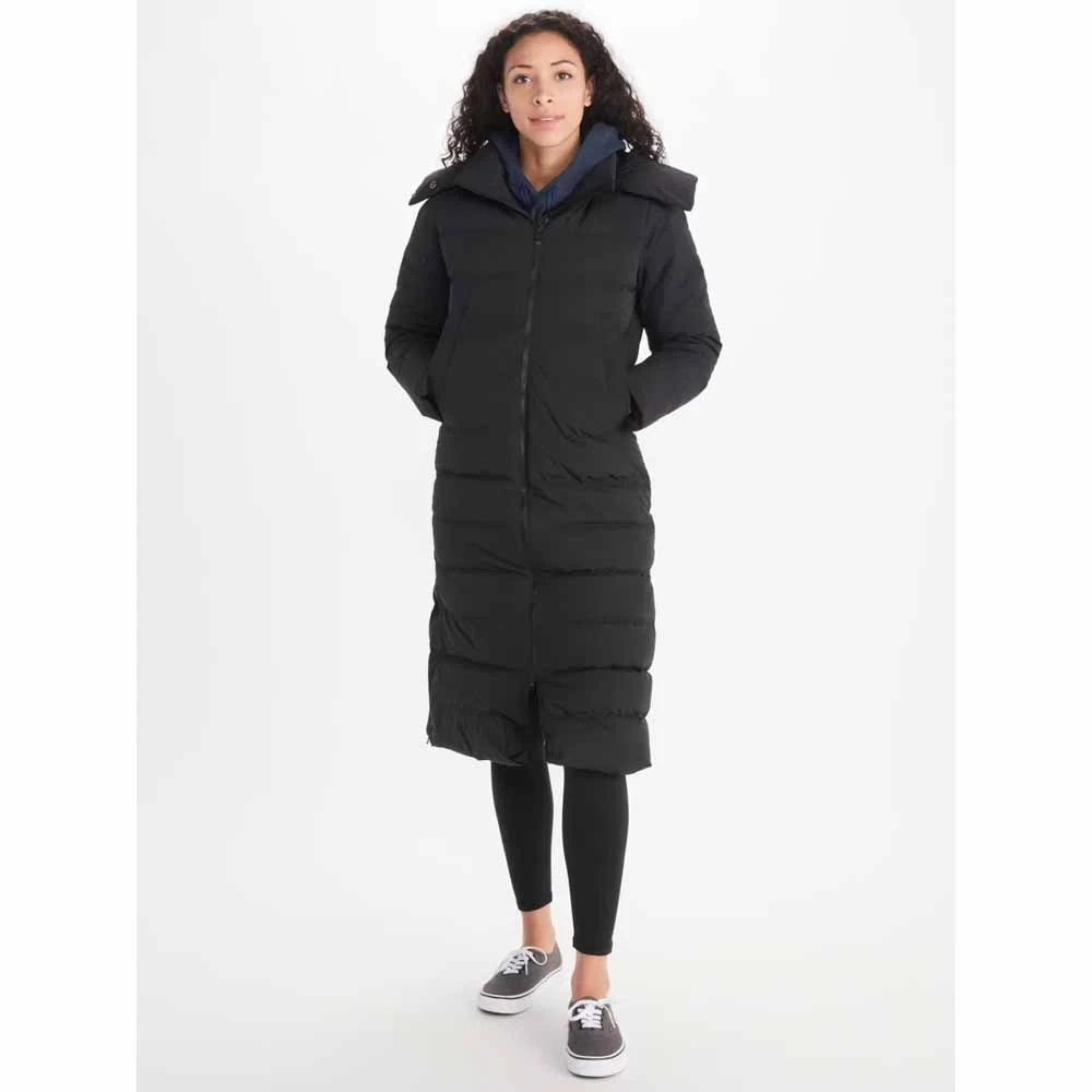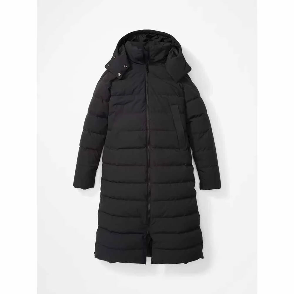 You never know where your urban adventure will lead with the Women’s Prospect Coat. Its long silhouette features 800-fill-power-down insulation that’s finished with a moisture-resistant Down Defender treatment, while the Marmot MemBrain 2-layer waterproof/breathable fabric repels rain. The removable hood, two-way zipper, and side hem vents keep you comfortable as you’re exploring the city. Stow small essentials in this winter jacket’s zippered interior or handwarmer pockets.