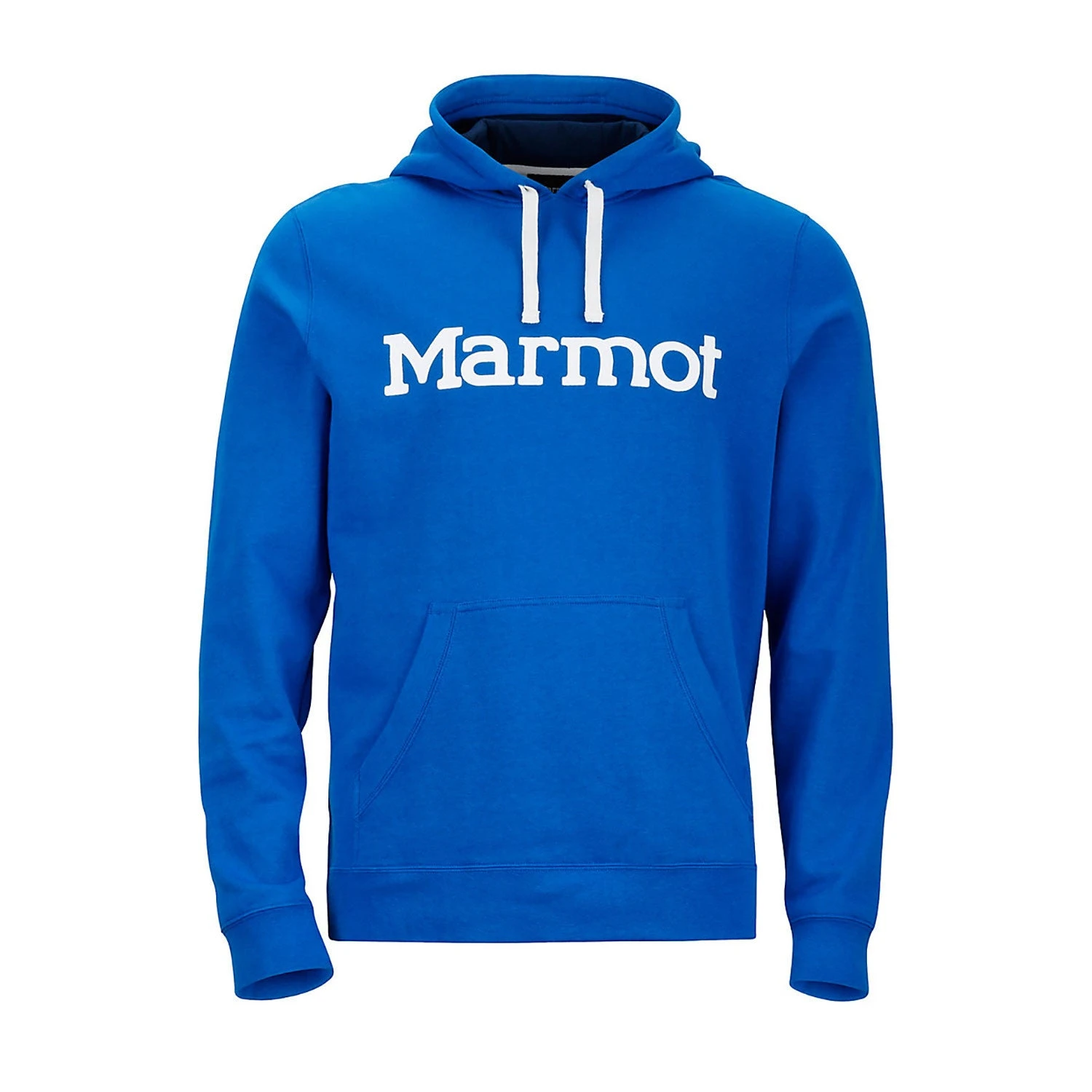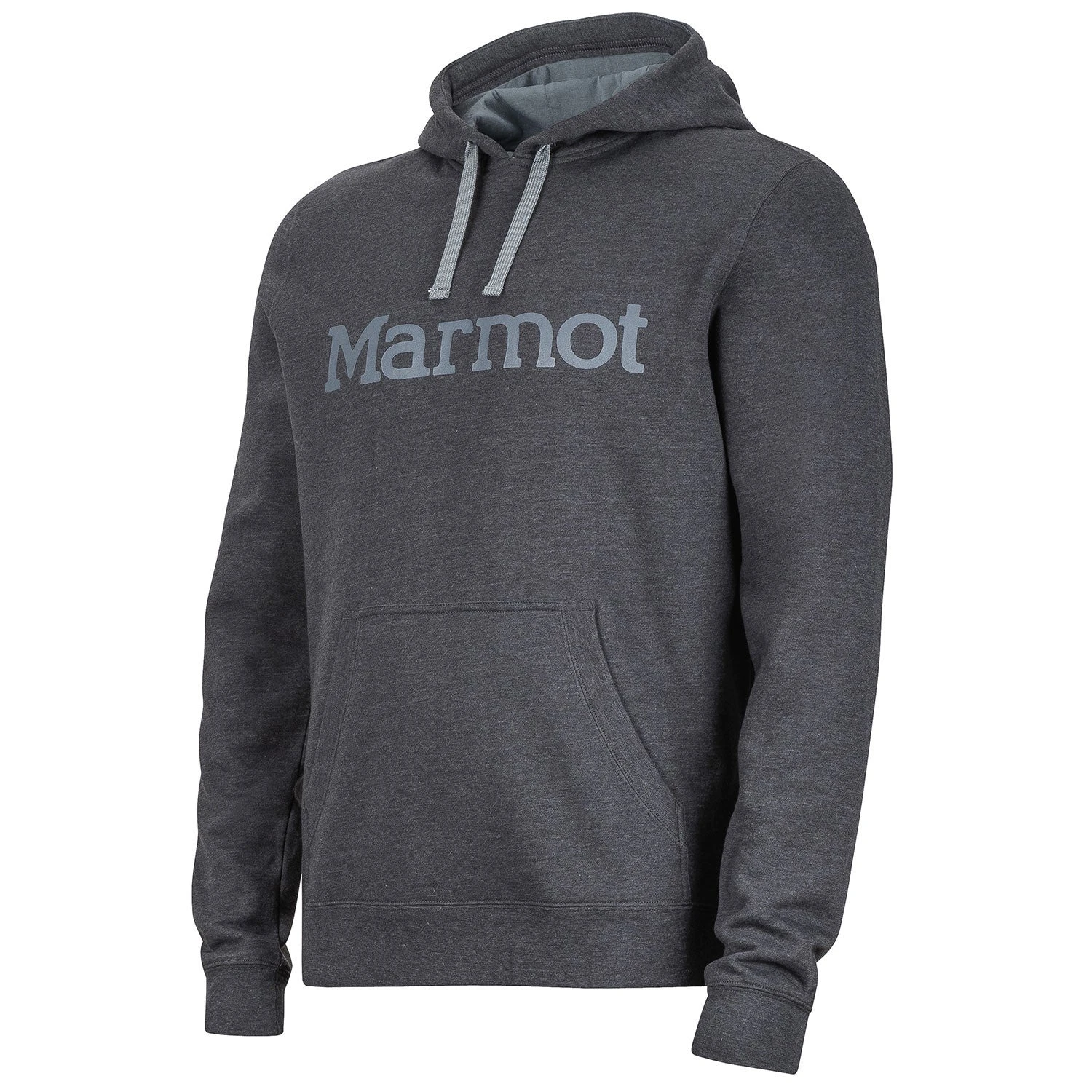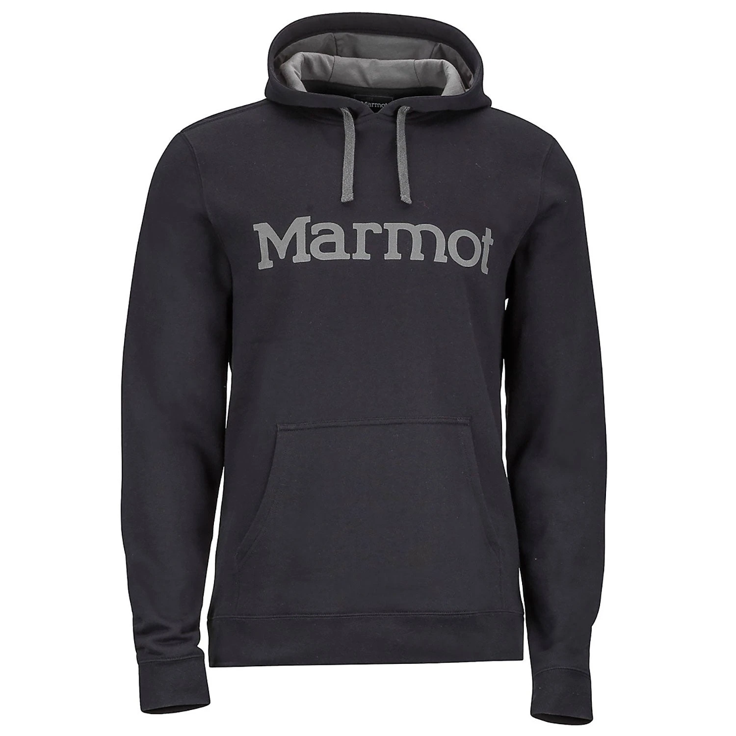 After a day battling the ups and downs of that almost-winter weather, make some soup, build a fire and pull on the soft and cozy Marmot Hoody. A midweight pullover fleece, the cotton/polyester fabric blend is garment washed and the hood is jersey-lined for extra softness against the skin. Keep your hands warm in the kangaroo pocket and pull the drawcord to adjust the fit of the hood. Simple front graphics feature a screen-printed logo with environmentally conscious inks.